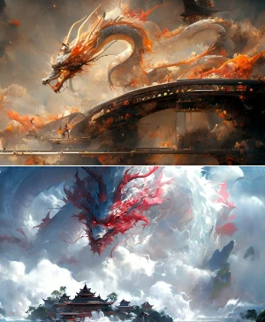 A giant dragon soaring like the world in a painting