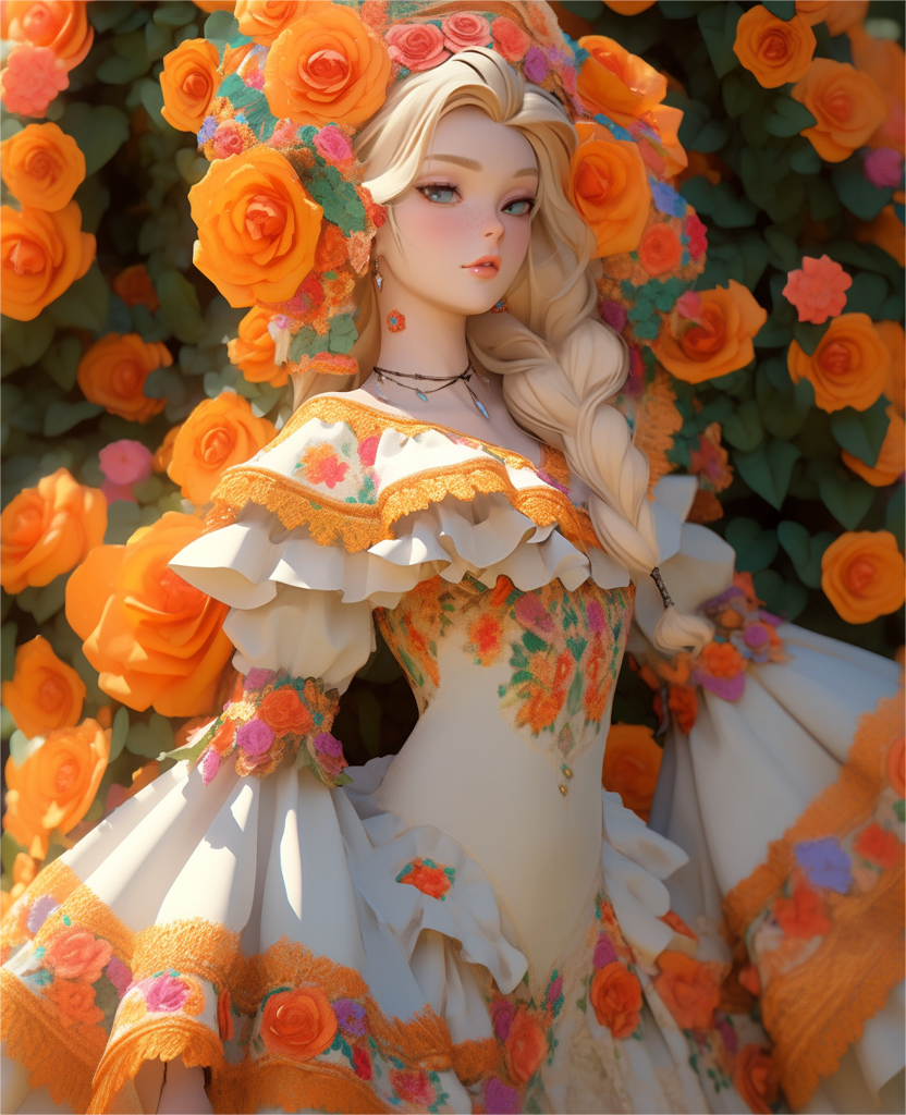 The elegant and beautiful Barbie doll in the flowers