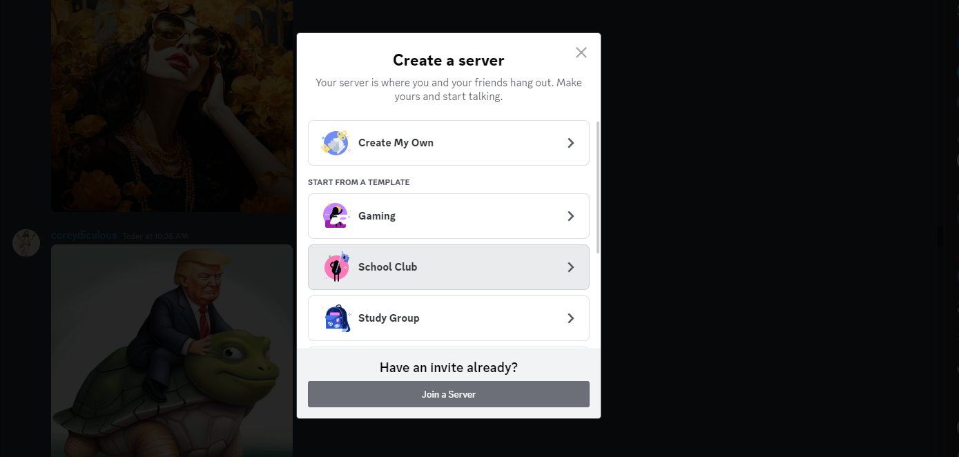 Click on the plus sign on the right and a pop-up window will appear for creating a server. Then, click on "Create it yourself" and select "For Me and My Friends Only". The server name and avatar can be the official default (optional), and the following information can be filled in freely. After filling it out, enter our server, and the creation of the server will be completed.
