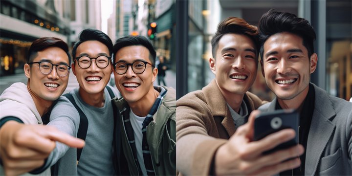 Wow, these guys are absolutely stunning! The combination of their chiseled features, mesmerizing eyes, and confident smiles is simply captivating. Their style and charisma radiate through the picture, making it hard to look away.