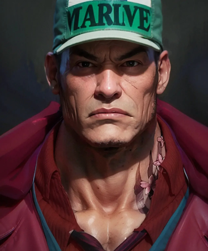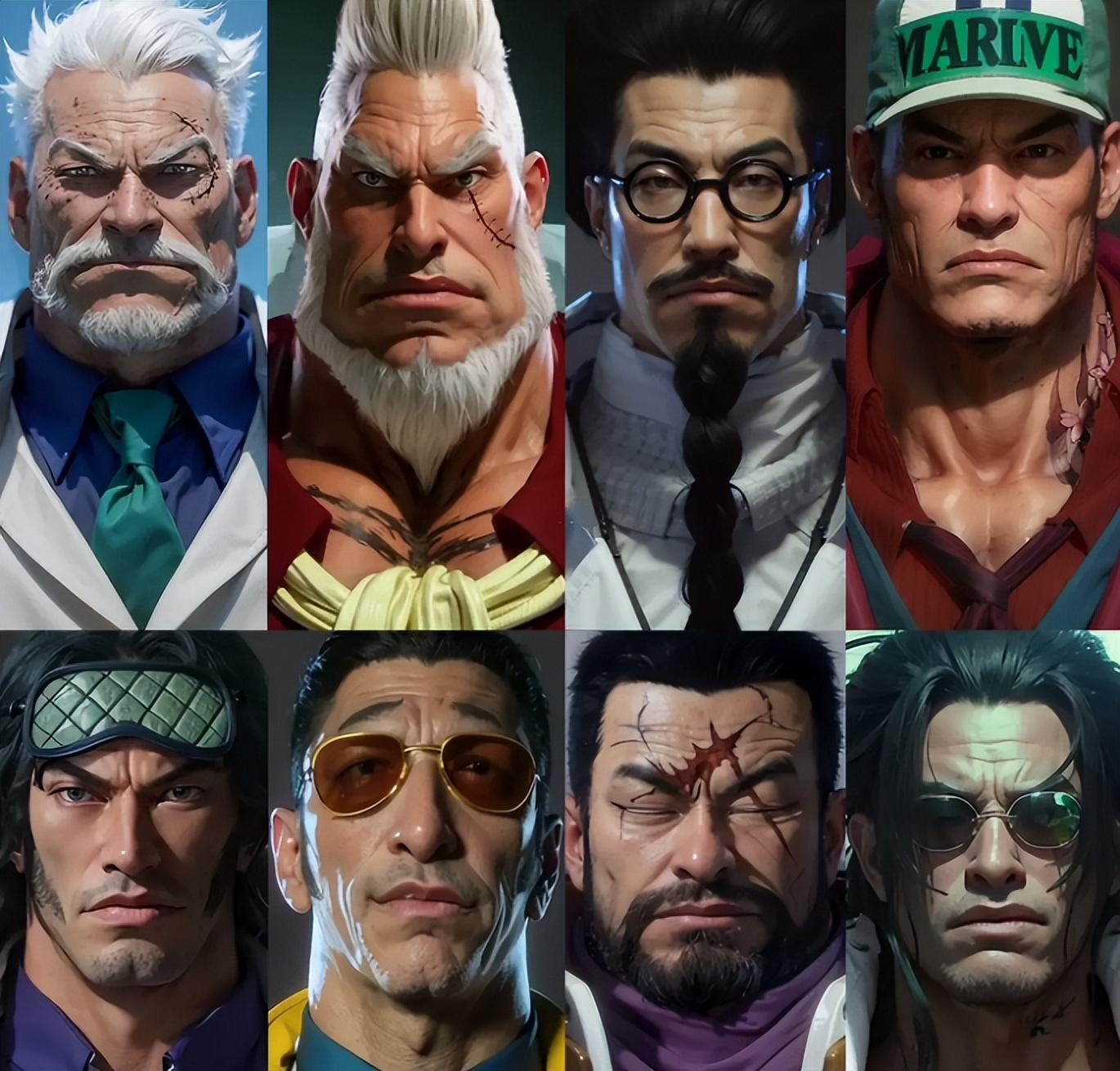 As shown in the above figure, the Haimi can see that this set of images mainly focuses on the high-end combat capabilities of the Navy, including veteran generals such as Kapu and the Warring States period, as well as major generals such as Red Dog, Green Pheasant, Vine Tiger, and Green Bull. It has to be said that among these 8 AI drawn images, I personally believe that the most similar or precise temperament is definitely the Yellow Ape! In this picture, the casual and slightly middle-aged uncle like demeanor of the Yellow Ape is truly reproducible, and even accurately portrays the "underpaid" style of the Yellow Ape in the Pirate King.