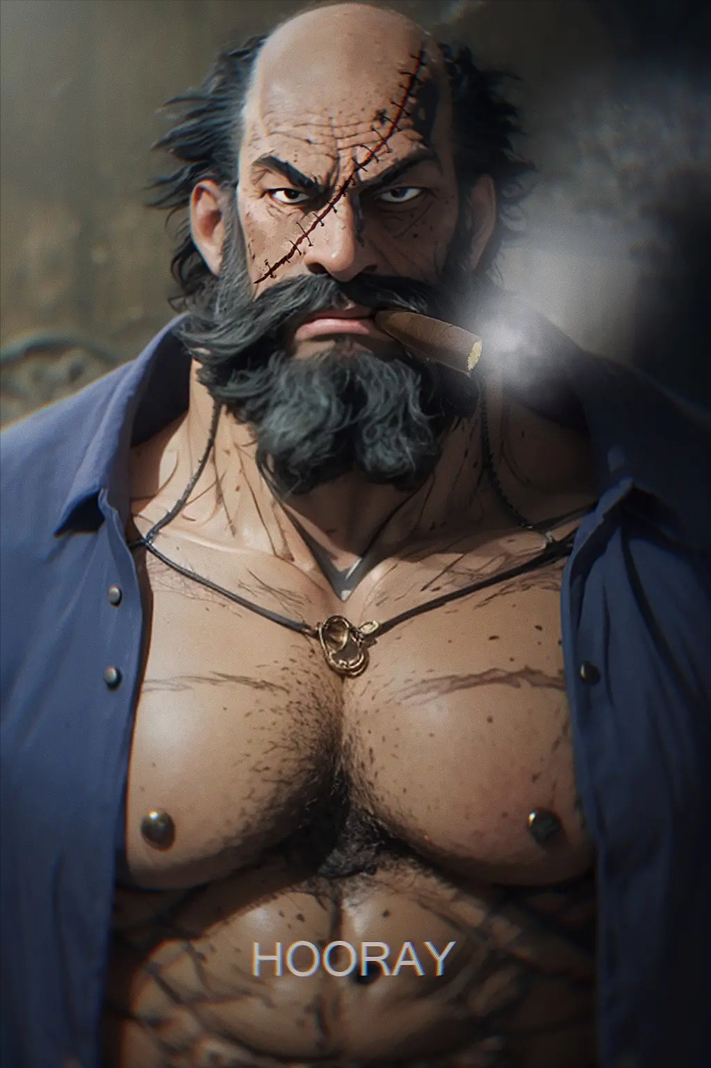 In addition, under the influence of the Whitebeard Pirates, there are 43 other independent affiliated Pirates following. Let's take a look at the team leaders of the White Bearded Pirate Squad, restored by AI realistic style.