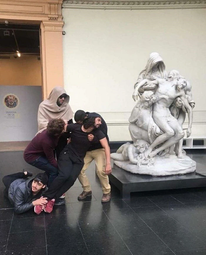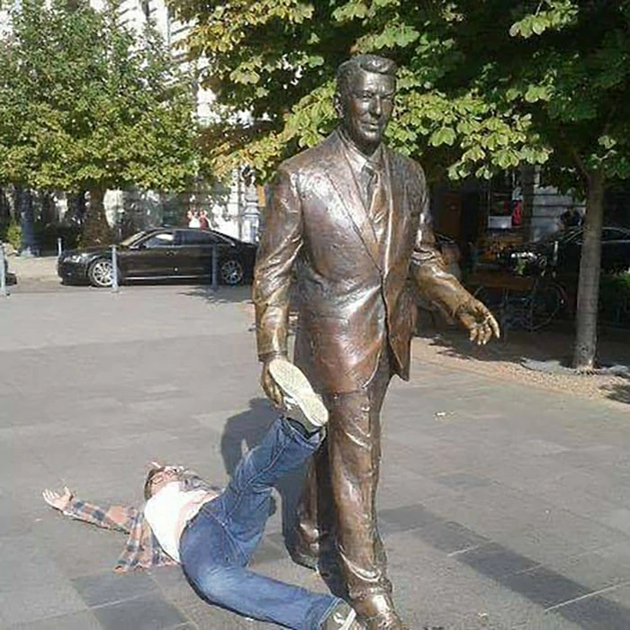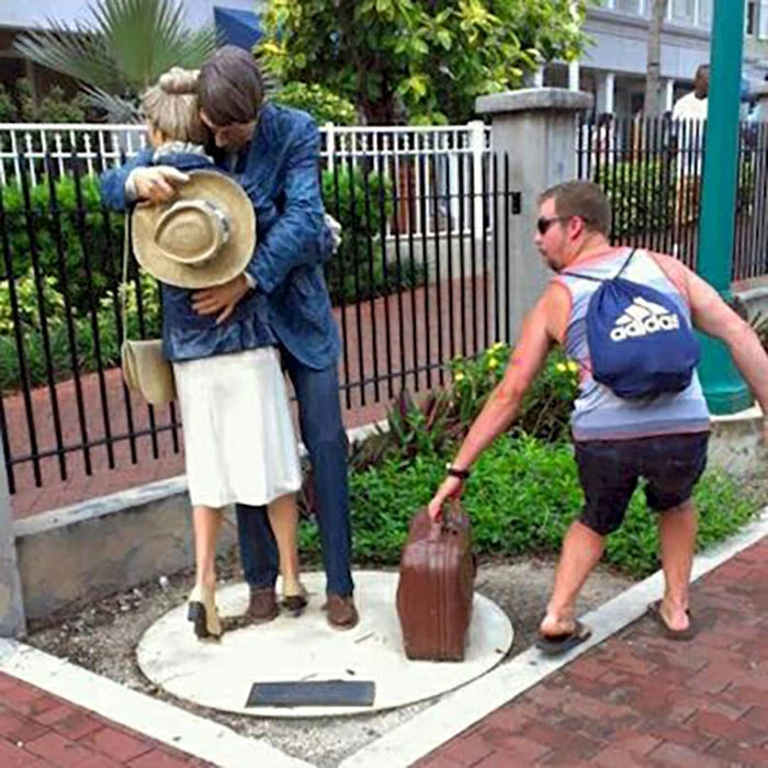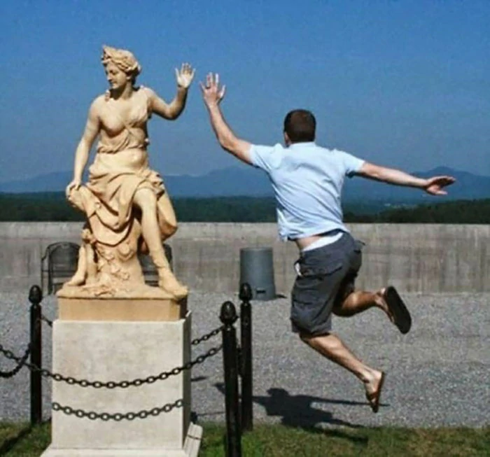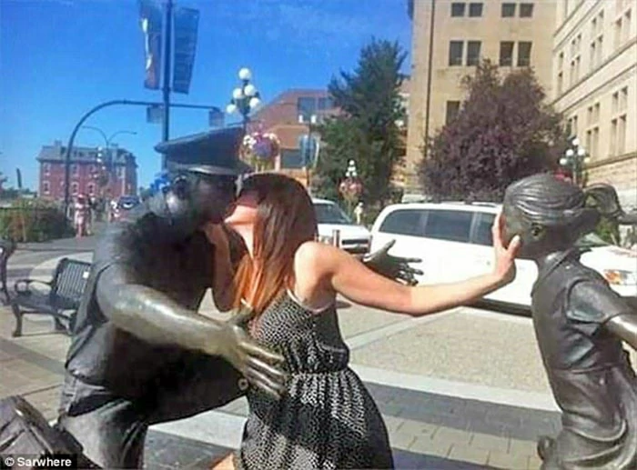 We have collected some of the most interesting and creative photos of people posing next to the statue. These photos not only provide you with recommended daily humor doses, but let's take a look together.