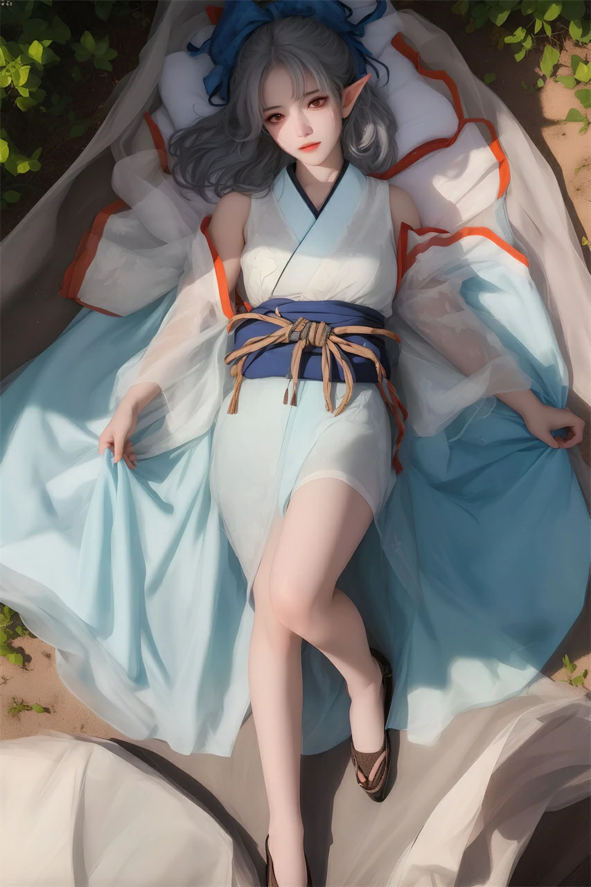 Dressed Beauty Facing the Evening Wind by the Sea