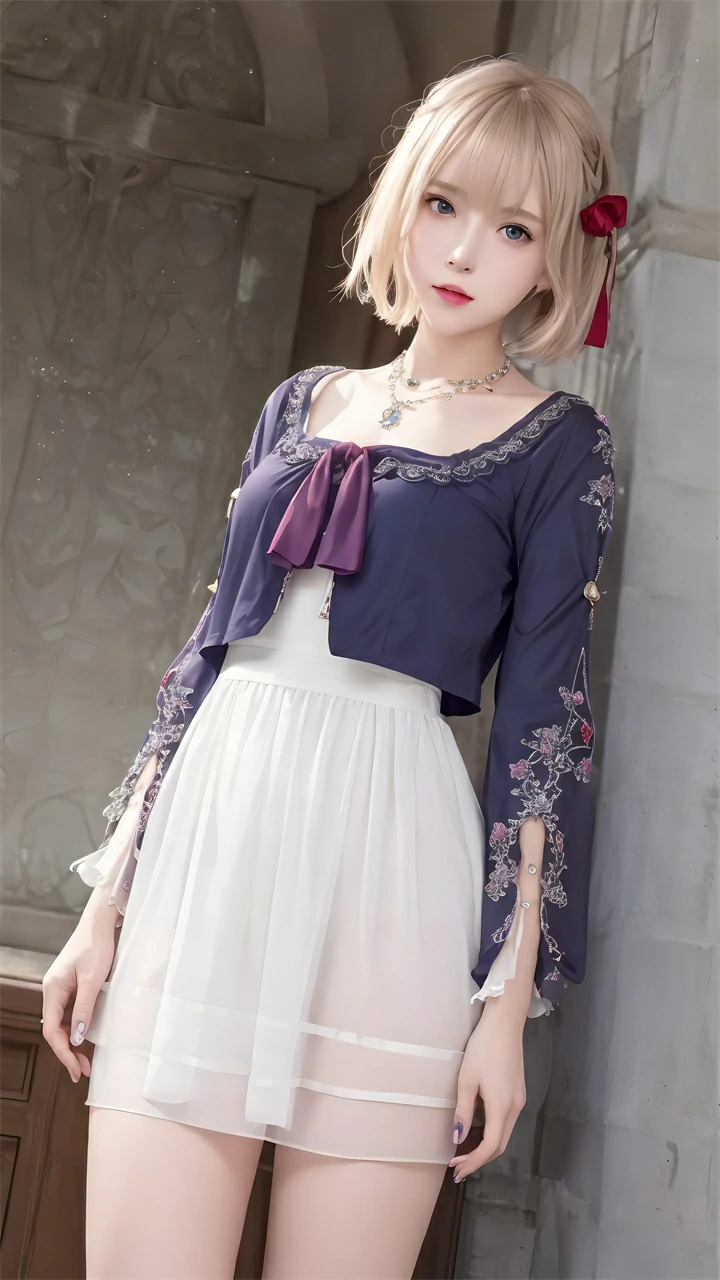She is wearing a beautiful top hat with an elegant bow, which is very in line with the tradition of British style. Her coffee colored boots and handbag match perfectly, reflecting the overall coordination of the outfit. The embellishments of pearl necklaces make the entire person look more exquisite and elegant. Violet's British style attire is not only very beautiful, but also showcases her temperament and personal style.