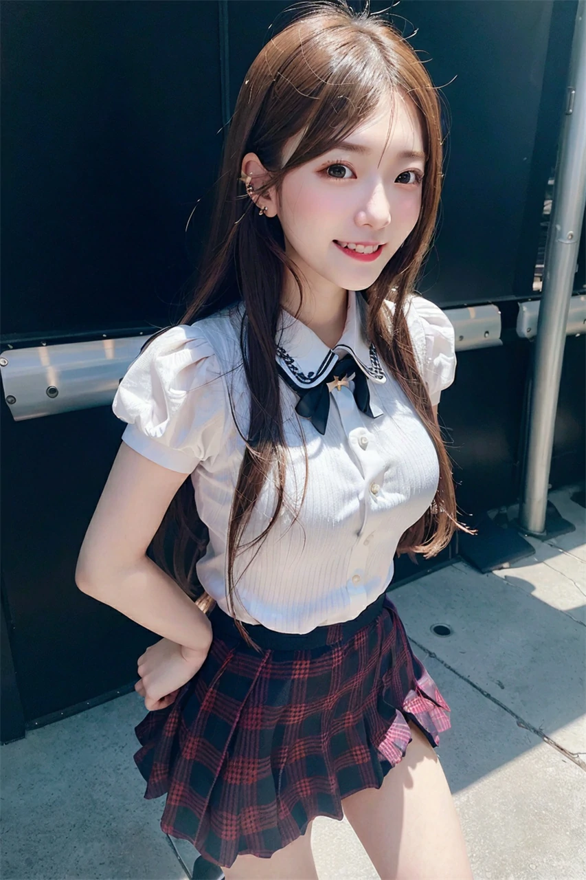 In the crowded crowd of the amusement park, the elegant and confident girl walked forward, attracting everyone's attention. She was wearing a simple and fashionable dress, with a slender figure and beautiful curves. Her skin is fair and pure, giving people a fresh feeling, like the freshness and rebirth of tender leaves in summer.