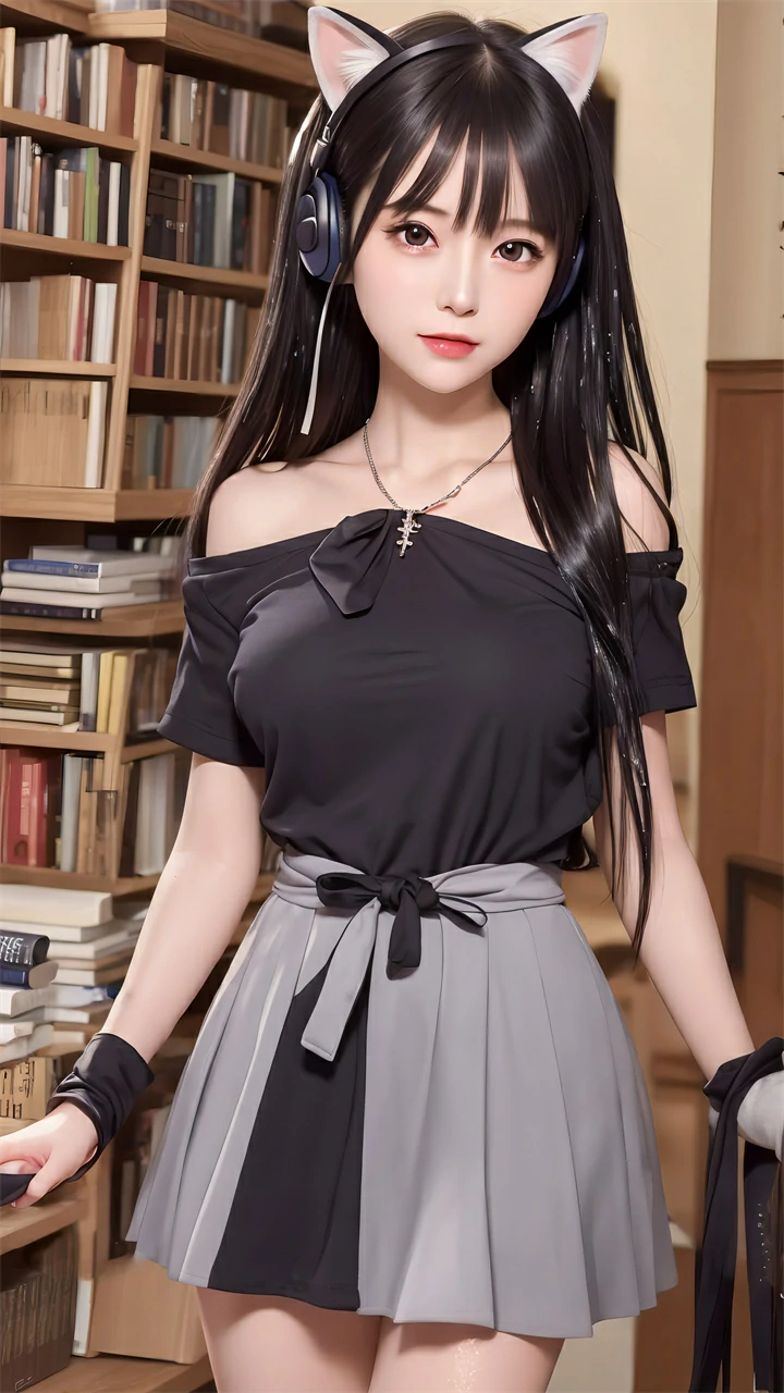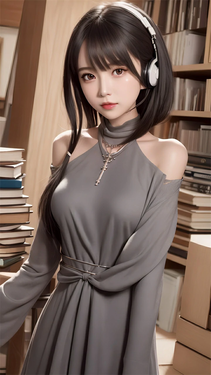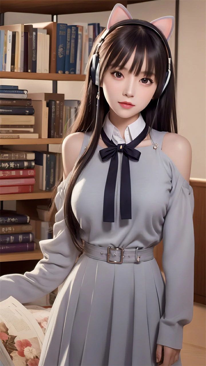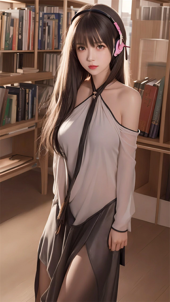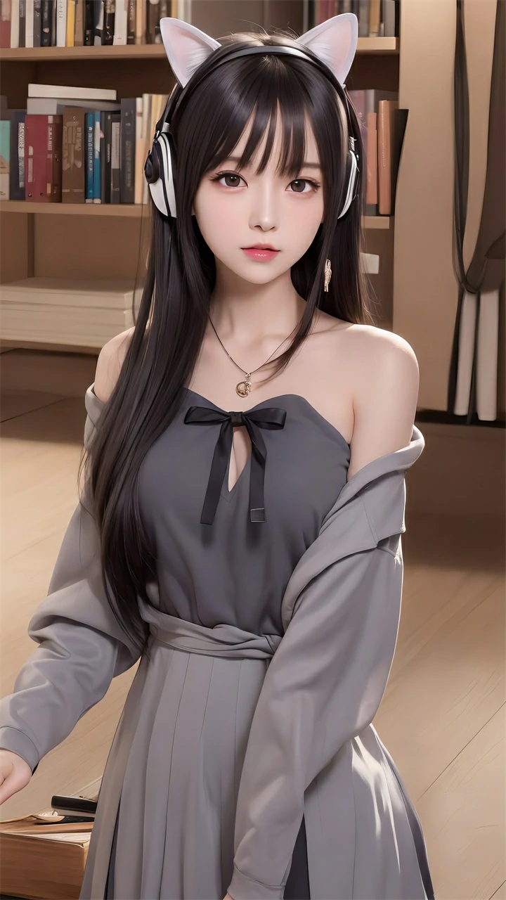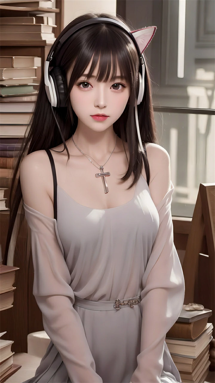 Encountering a girl wearing headphones in the library is a very beautiful thing. The earphone girl sat on the table in the corner, absorbed in reading a book, occasionally shaking her head as if trembling with the rhythm of the song. Her long hair was tied up, revealing her slender neck, which was very beautiful. She is wearing a small pair of headphones, which makes people feel like she has entered her own music world.