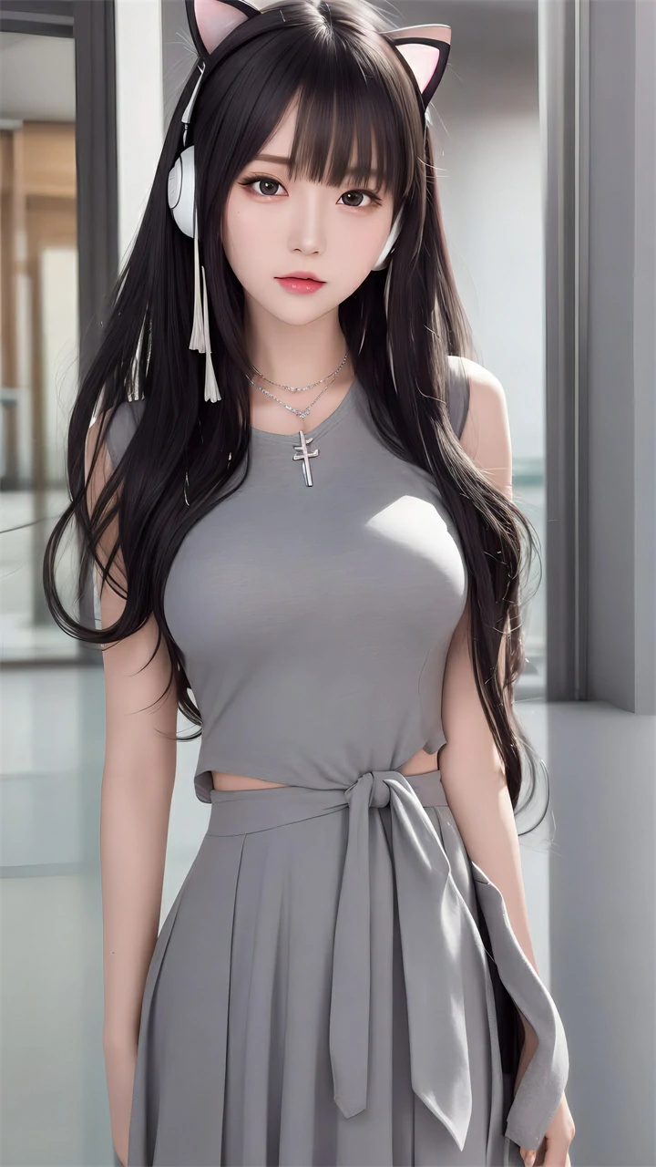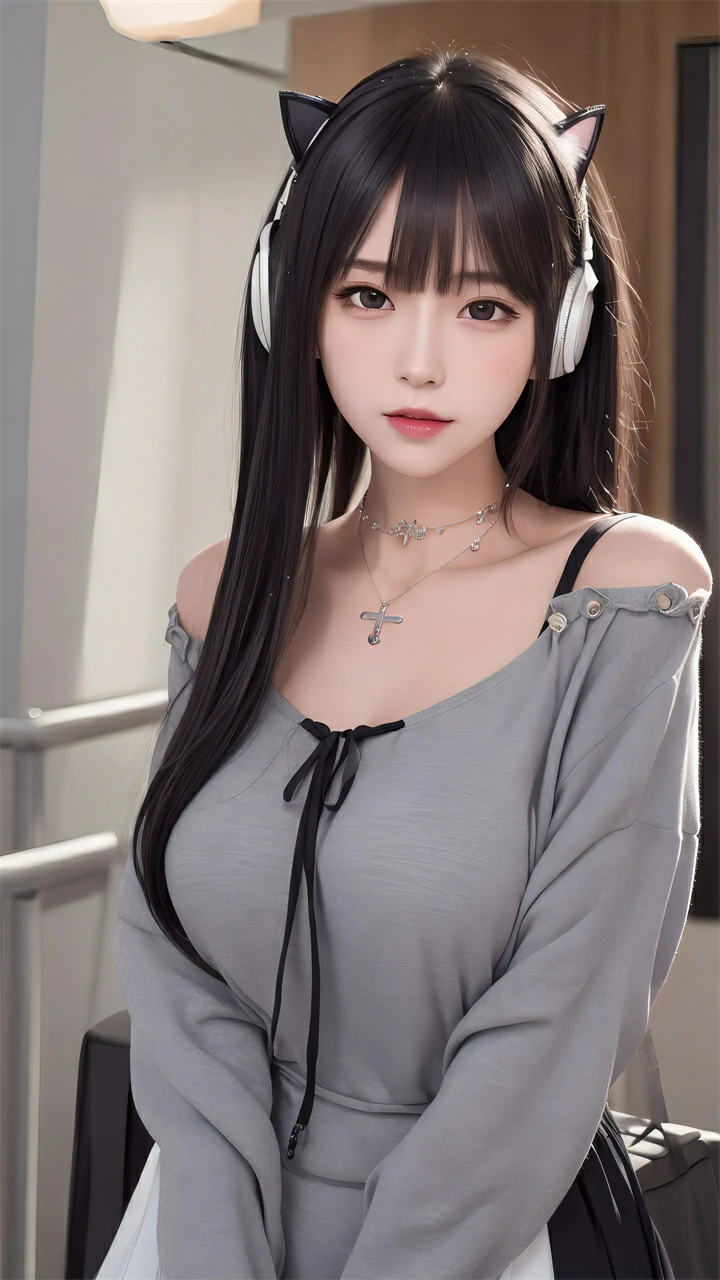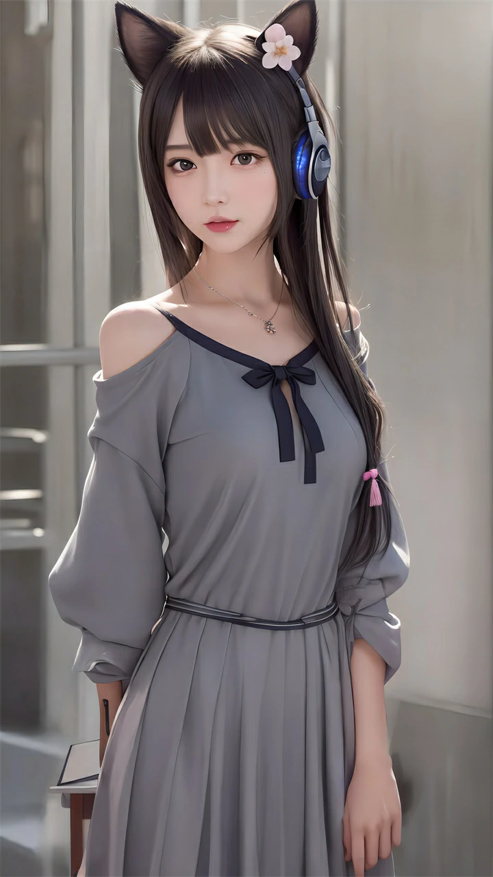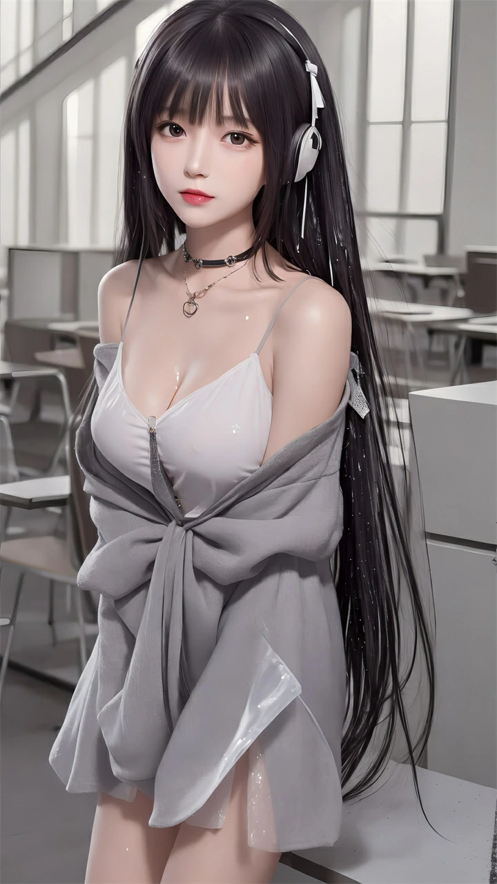 There is no extra makeup on her face, only a thin layer of foundation make-up, which makes her skin appear white and bright. Her eyes were slightly closed, her eyelashes trembled, as if enjoying the wonderful feeling brought by music.The earphone girl exudes a unique atmosphere, which is both youthful and fashionable, and full of cultural atmosphere. She enjoys her favorite things quietly and confidently, despite the noise around her, she is still completely immersed in her own world.