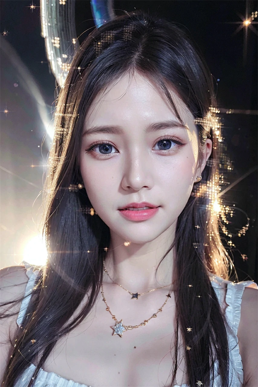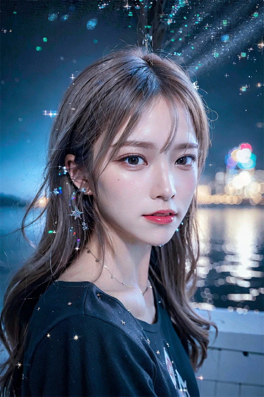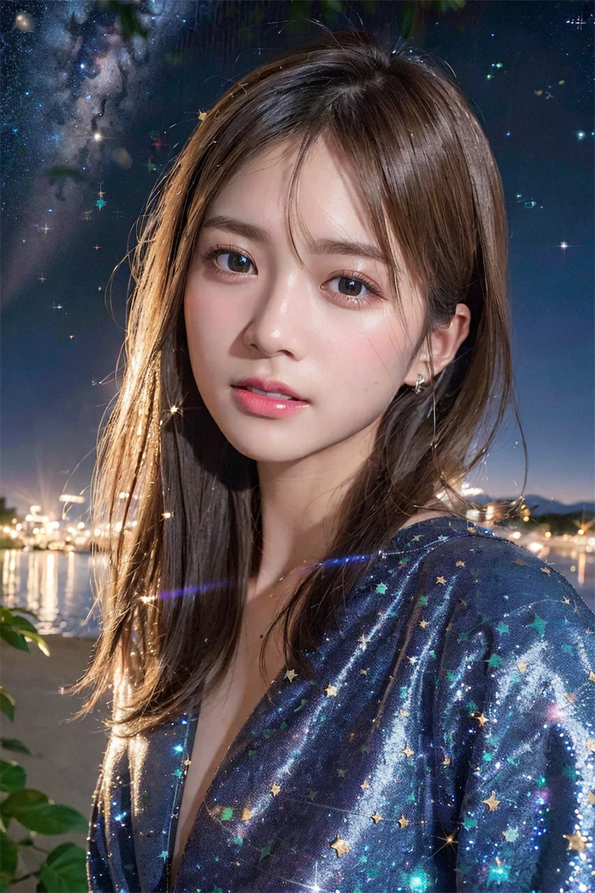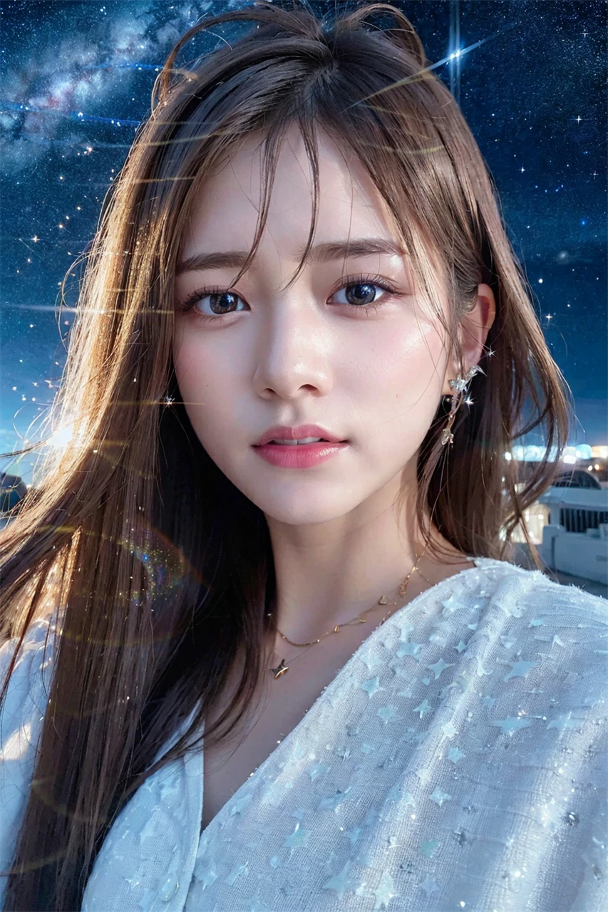 Under the reflection of the sunset, the girl's skin appears even fairer, exuding a mysterious and beautiful atmosphere throughout her body. Her eyes sparkled with wisdom and gentleness, giving people awe and admiration. Her mouth slightly raised, emitting a warm smile, making people feel a warm surge in their hearts. In an instant, the sunset set, and the orange color on the horizon gradually deepened. The blue sky was studded with little stars. The girl is like a small star, shining in the darkness, attracting people's attention. Her beauty will continue to endure forever, just like the vast and boundless sky.