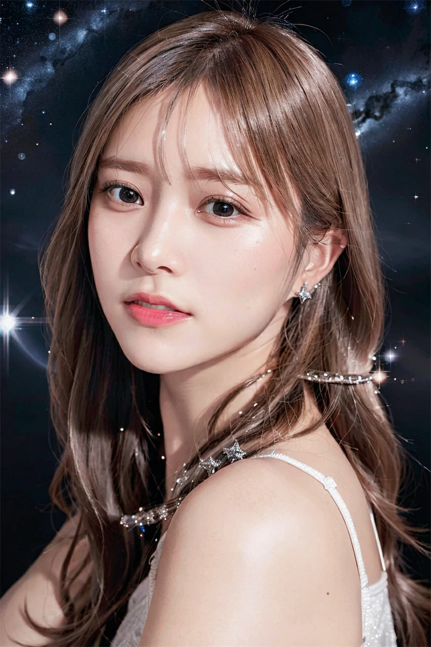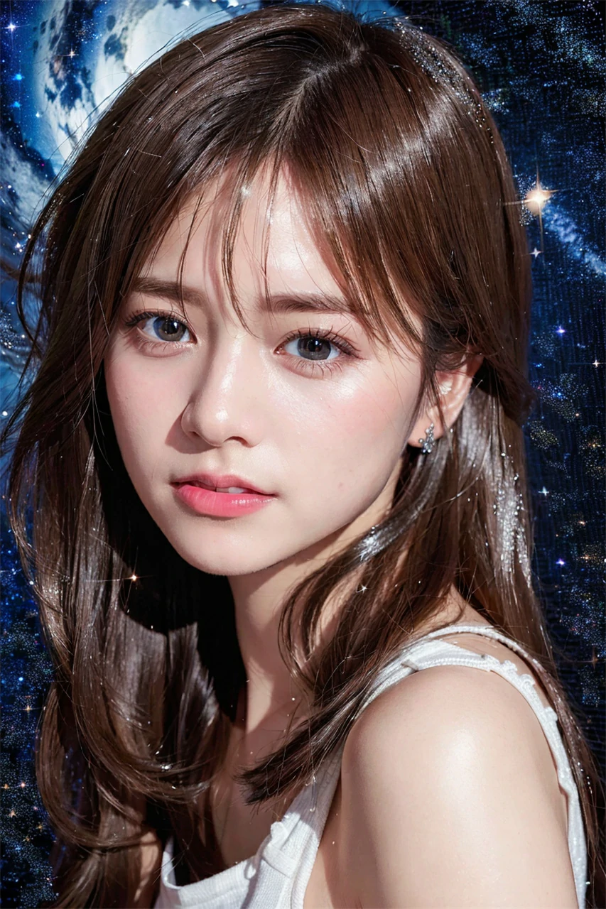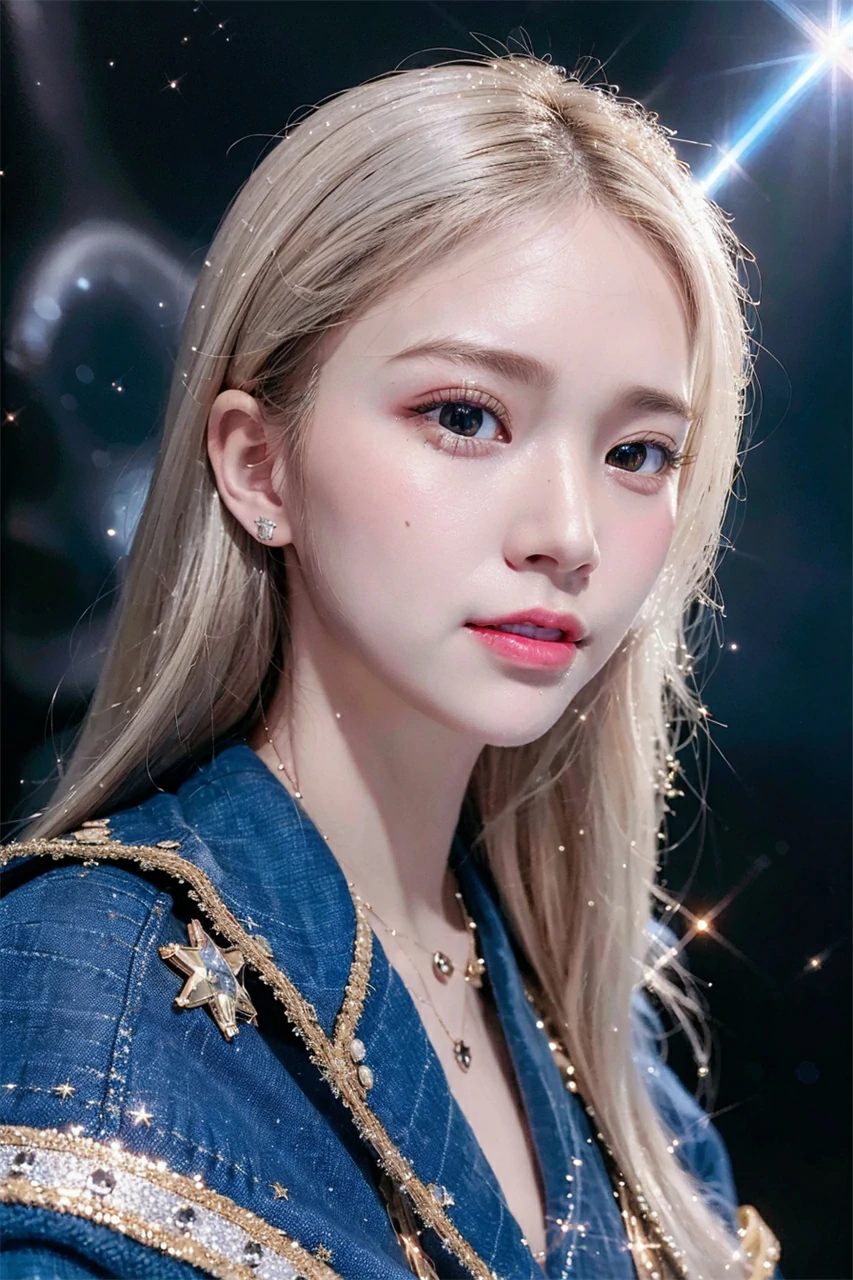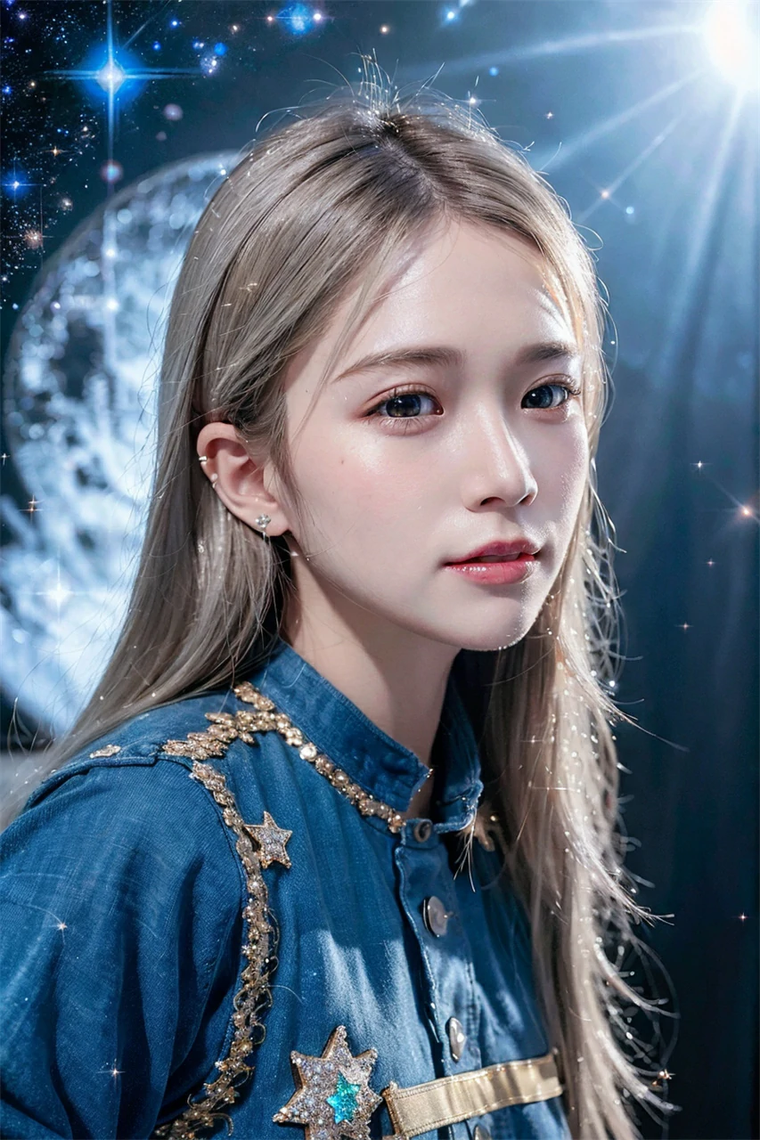 Under the reflection of the sunset, the girl's skin appears even fairer, exuding a mysterious and beautiful atmosphere throughout her body. Her eyes sparkled with wisdom and gentleness, giving people awe and admiration. Her mouth slightly raised, emitting a warm smile, making people feel a warm surge in their hearts. In an instant, the sunset set, and the orange color on the horizon gradually deepened. The blue sky was studded with little stars. The girl is like a small star, shining in the darkness, attracting people's attention. Her beauty will continue to endure forever, just like the vast and boundless sky.