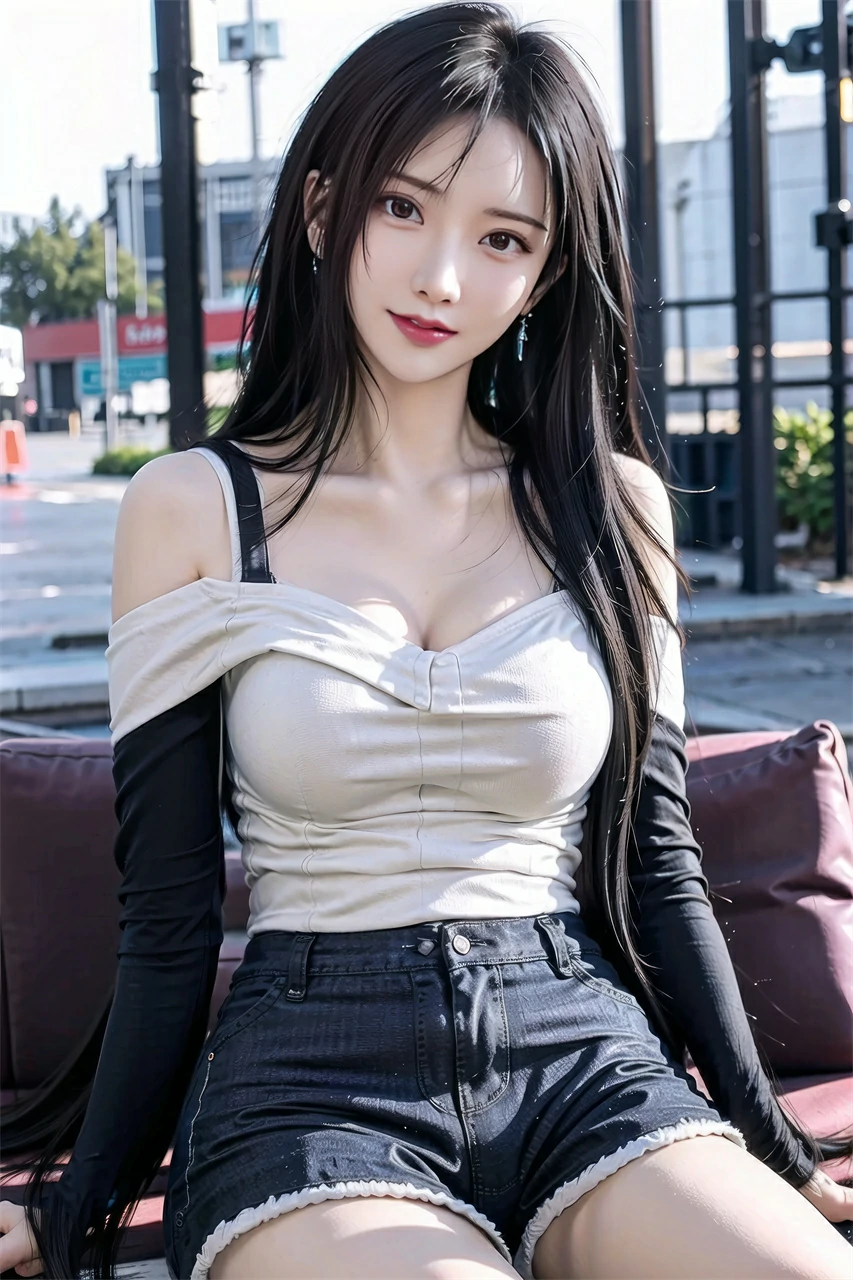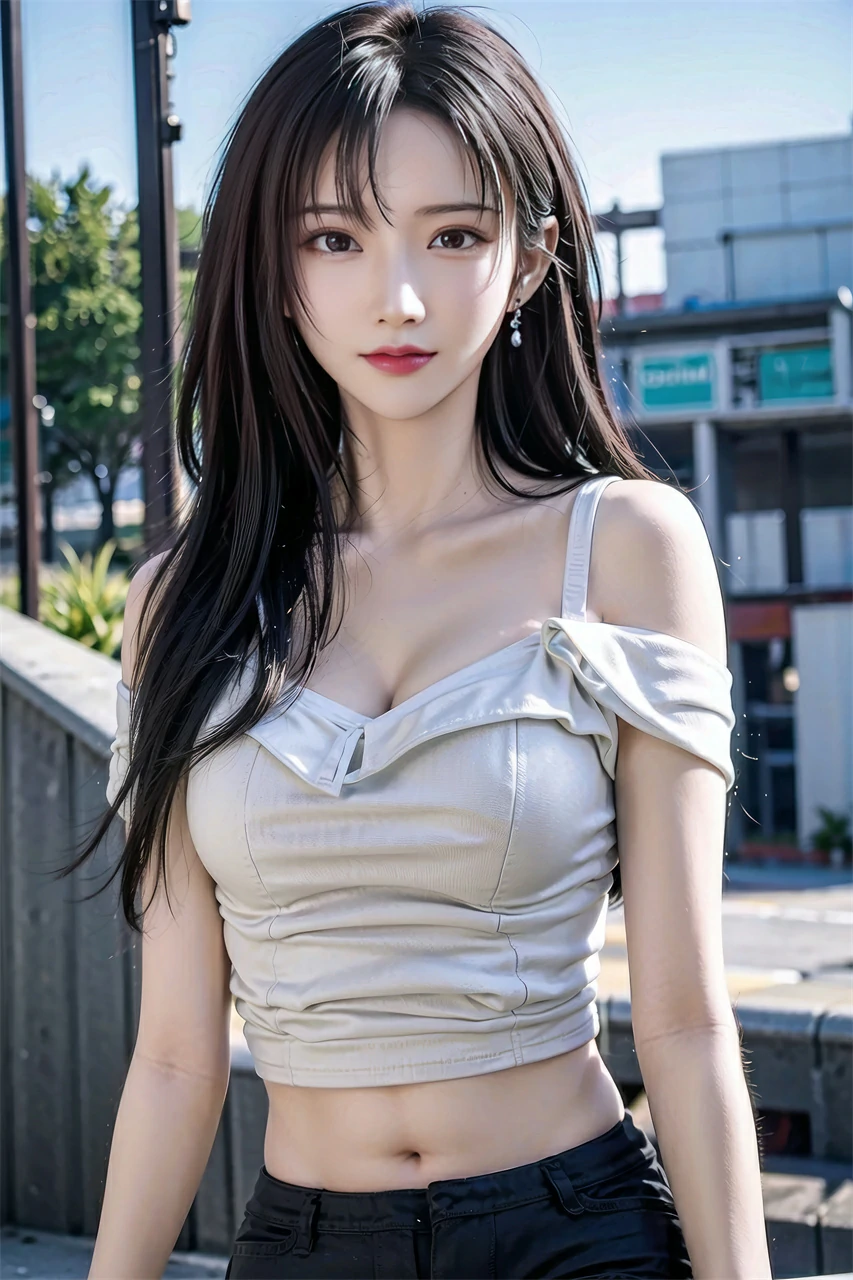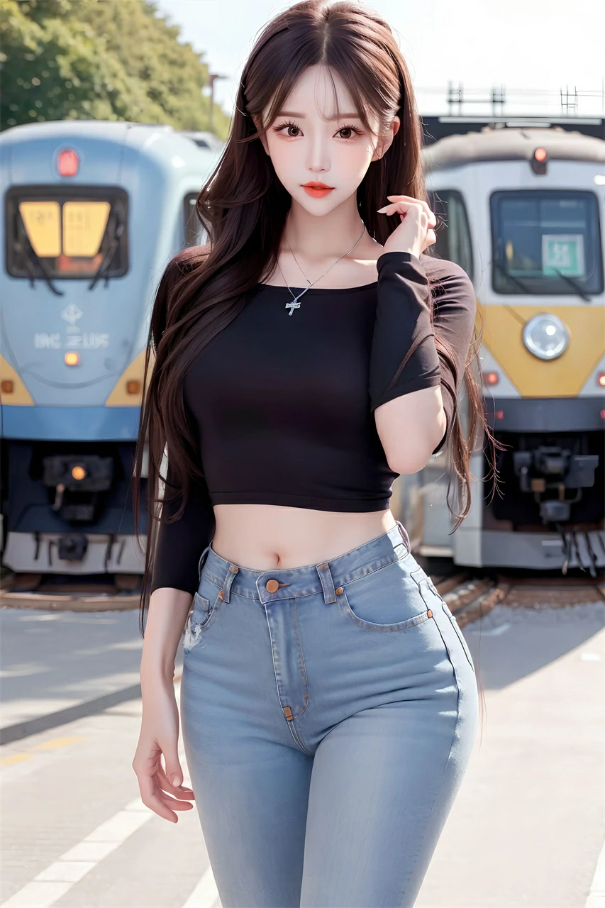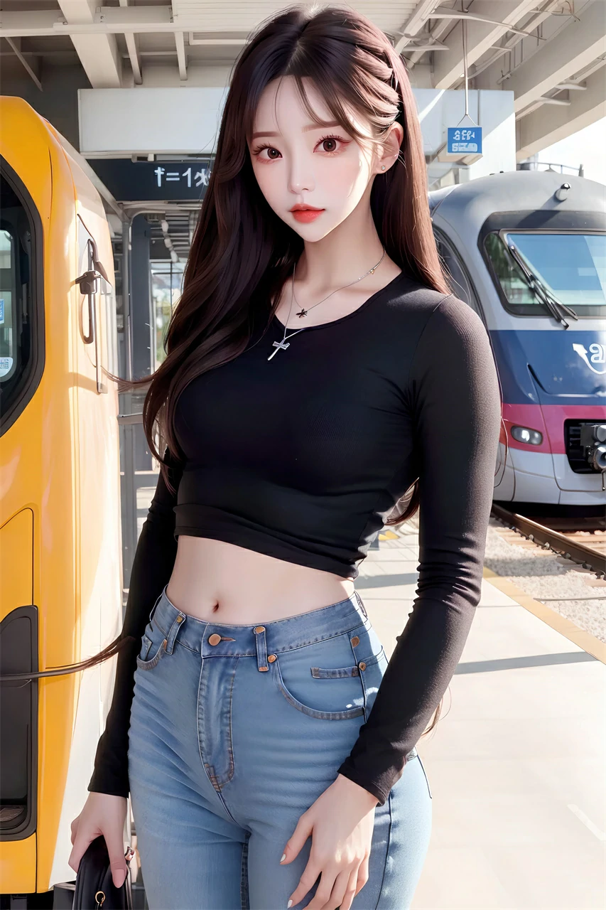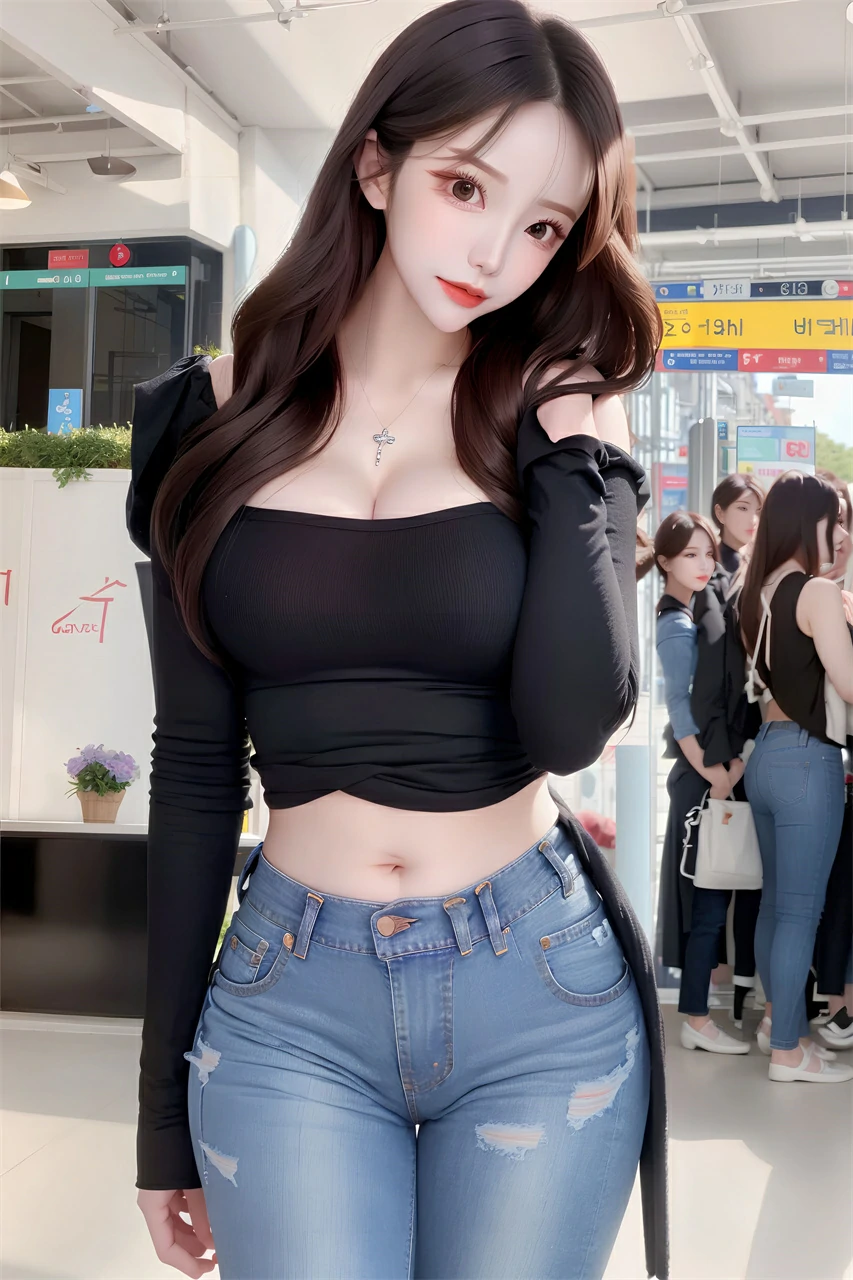 There were many people waiting for the bus at the station, and one of the girls caught my attention. She was wearing tight jeans and her long black hair fell over her shoulders. She exudes a confident and charming aura that makes me unable to move my gaze.