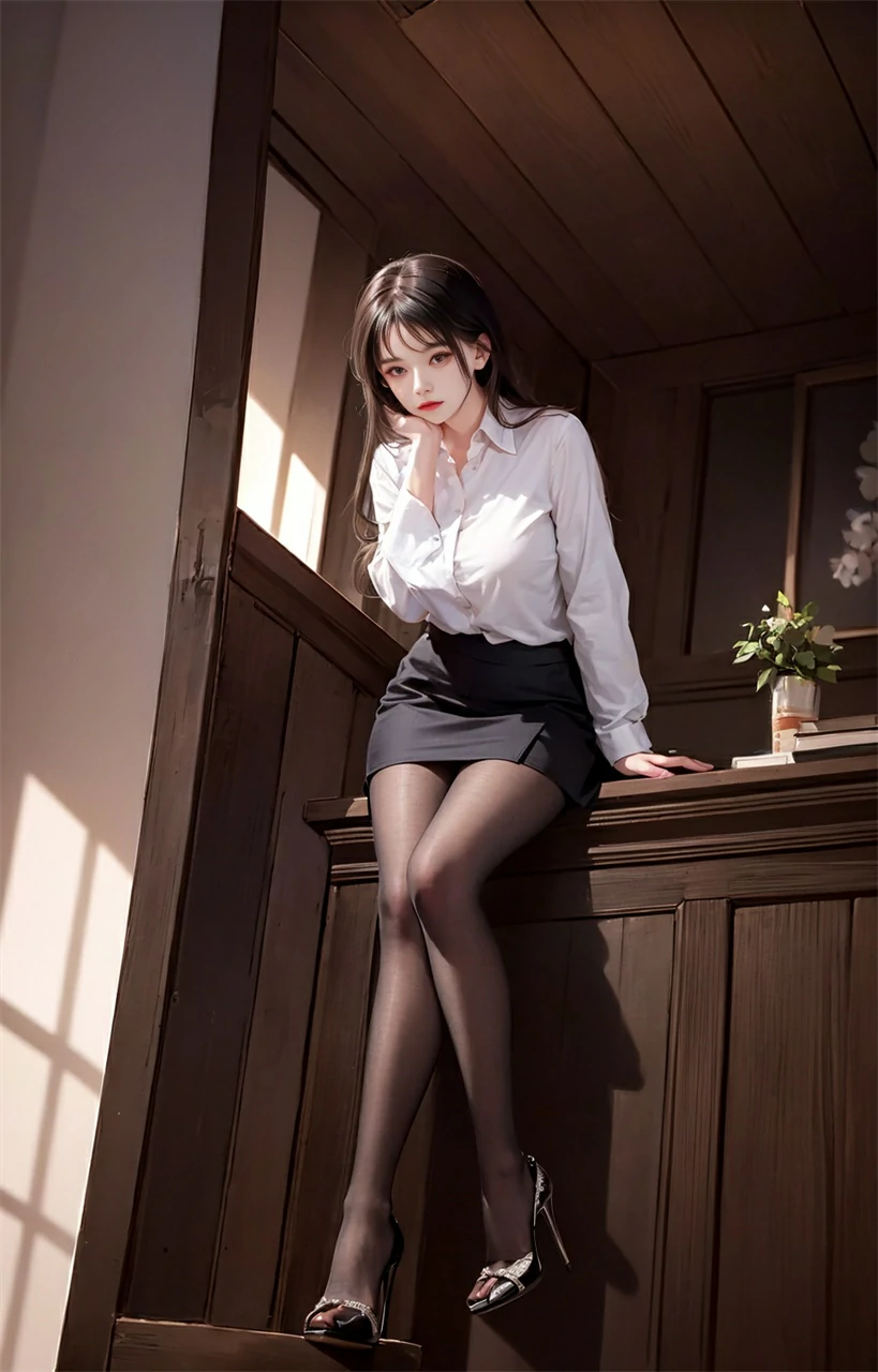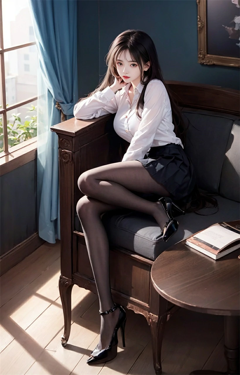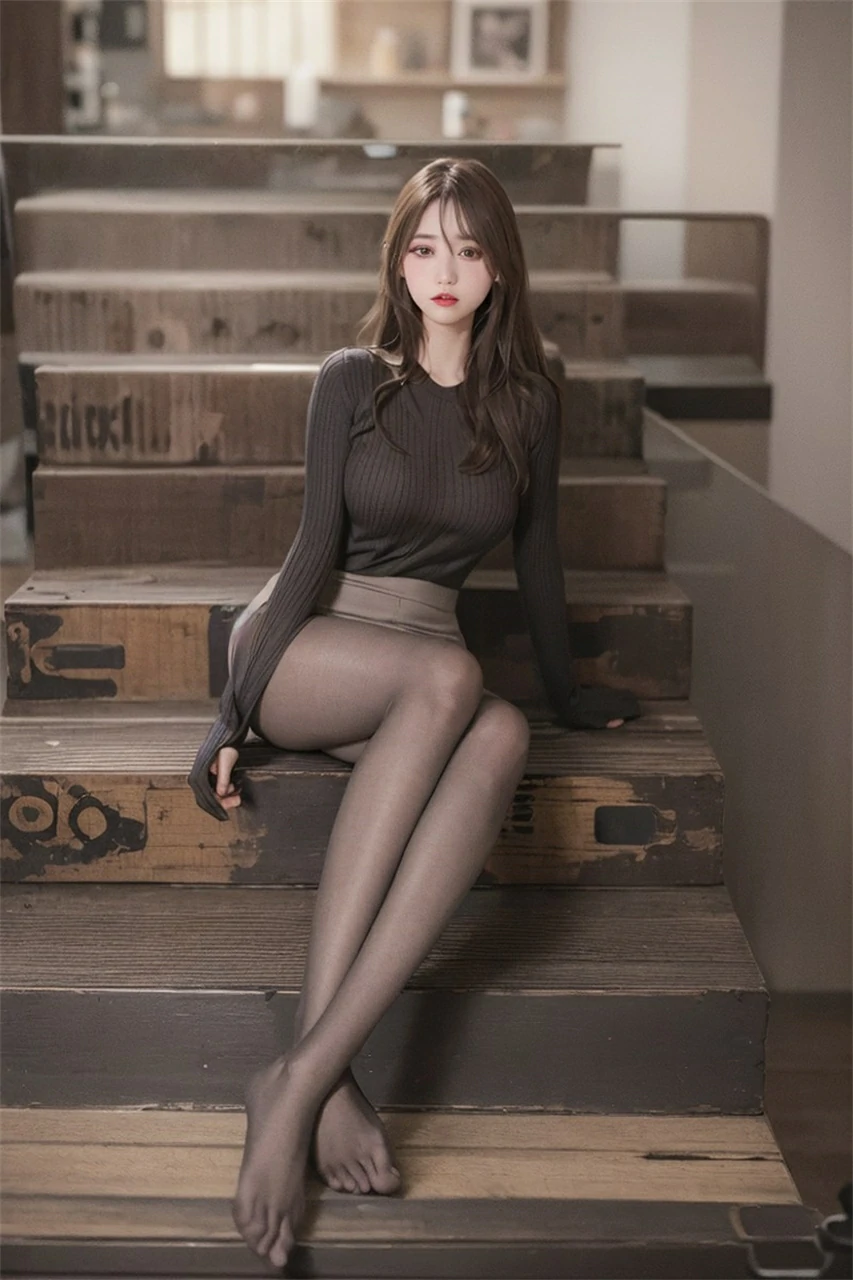 Whenever she walks on the road, her beautiful legs are adorned with dark stockings, making her charming silhouette even more beautiful. The detailed design and rhythm of stockings reflect her elegance and maturity. Her beauty and elegance, coupled with her graceful understanding and combination of stockings, make her even more charming.