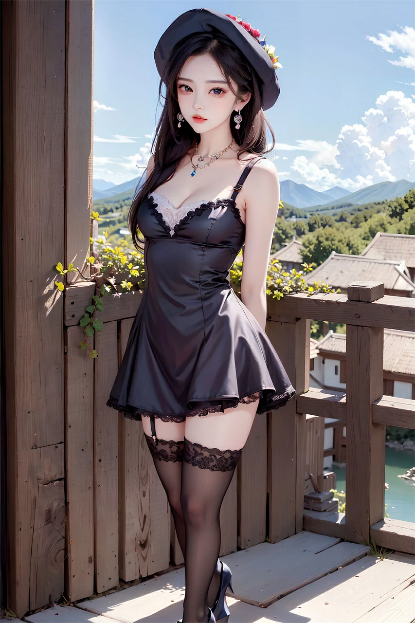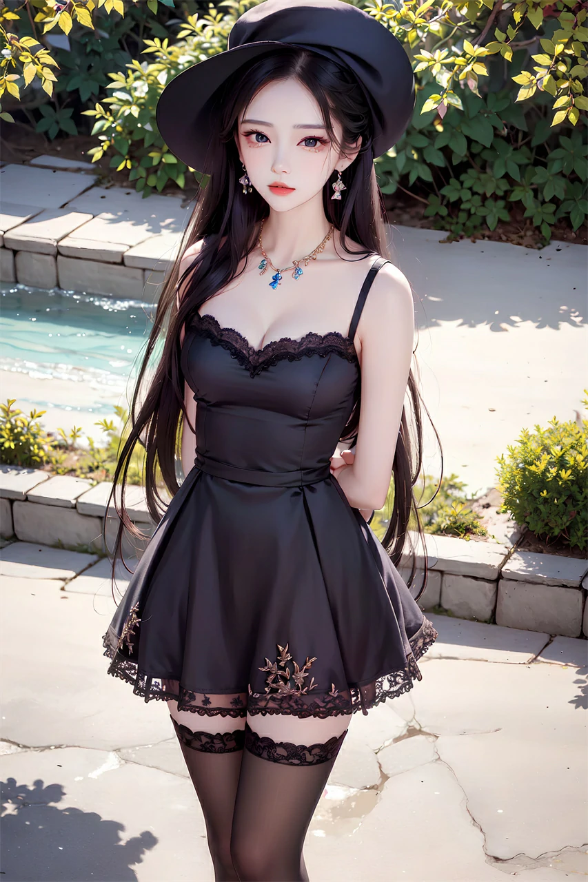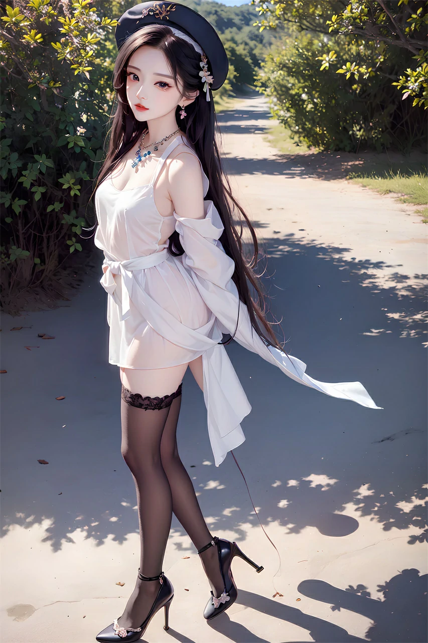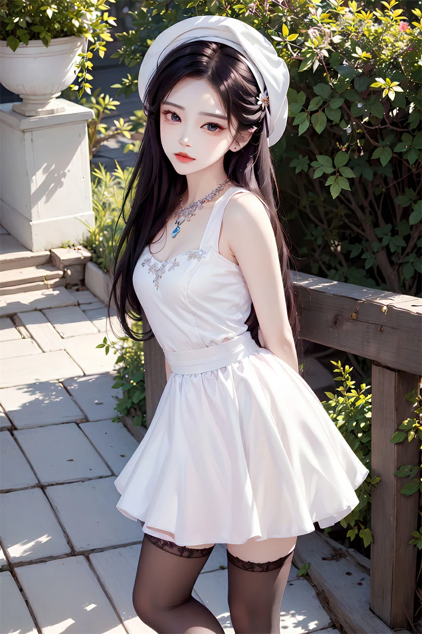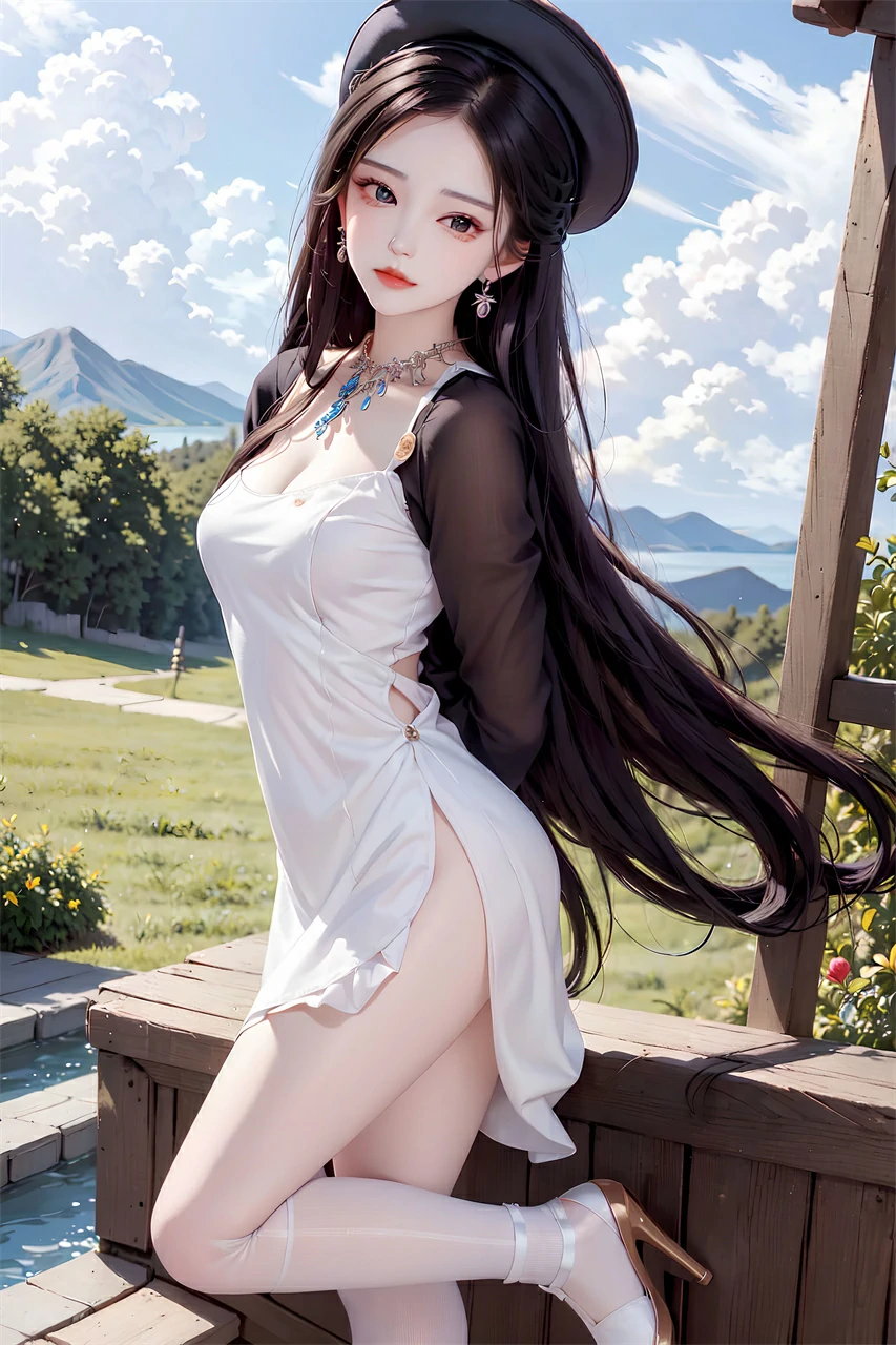 Your girlfriend is wearing a short skirt, a hat, and long hair, very beautiful. She may enjoy the freshness and comfort brought by summer, and accessories and clothing can also make her look more beautiful and confident. When taking photos or chatting, she may often adjust her hairstyle or hat and present a casual aesthetic.