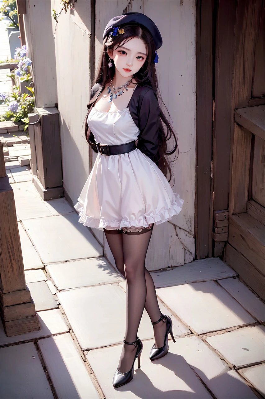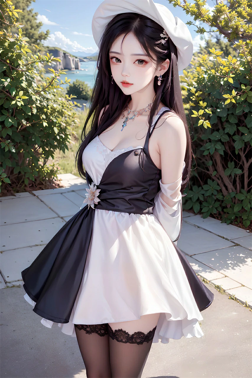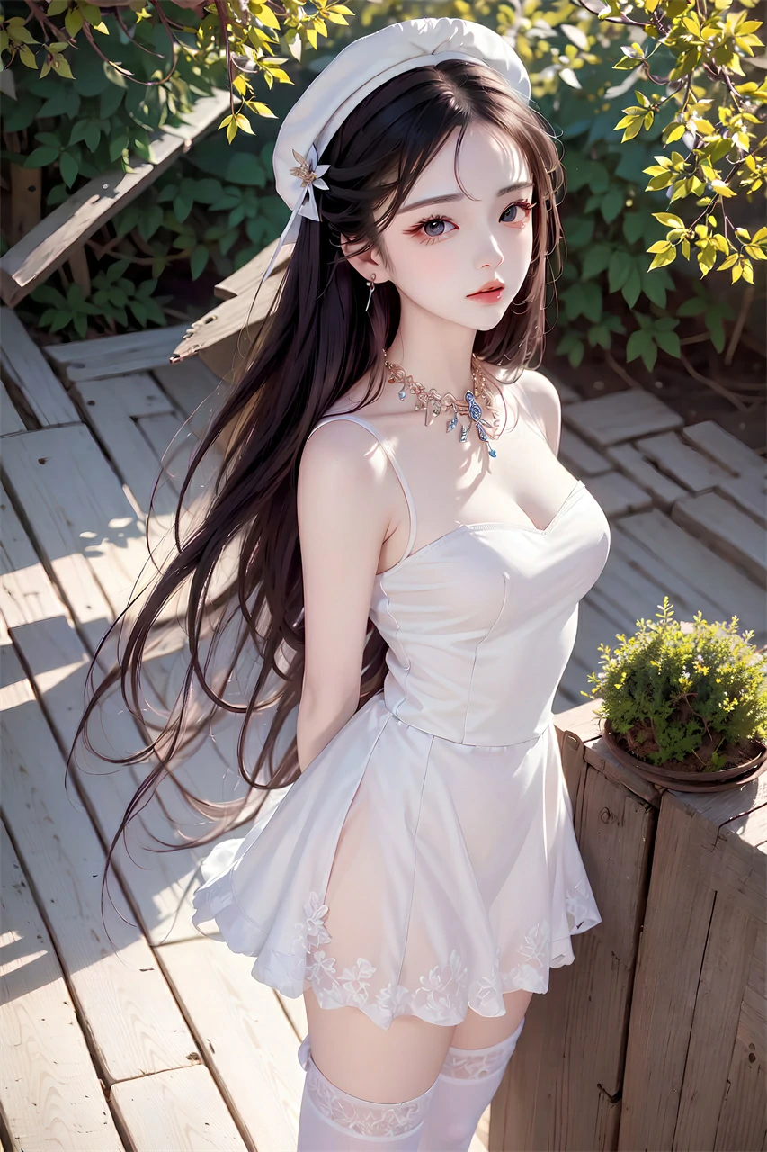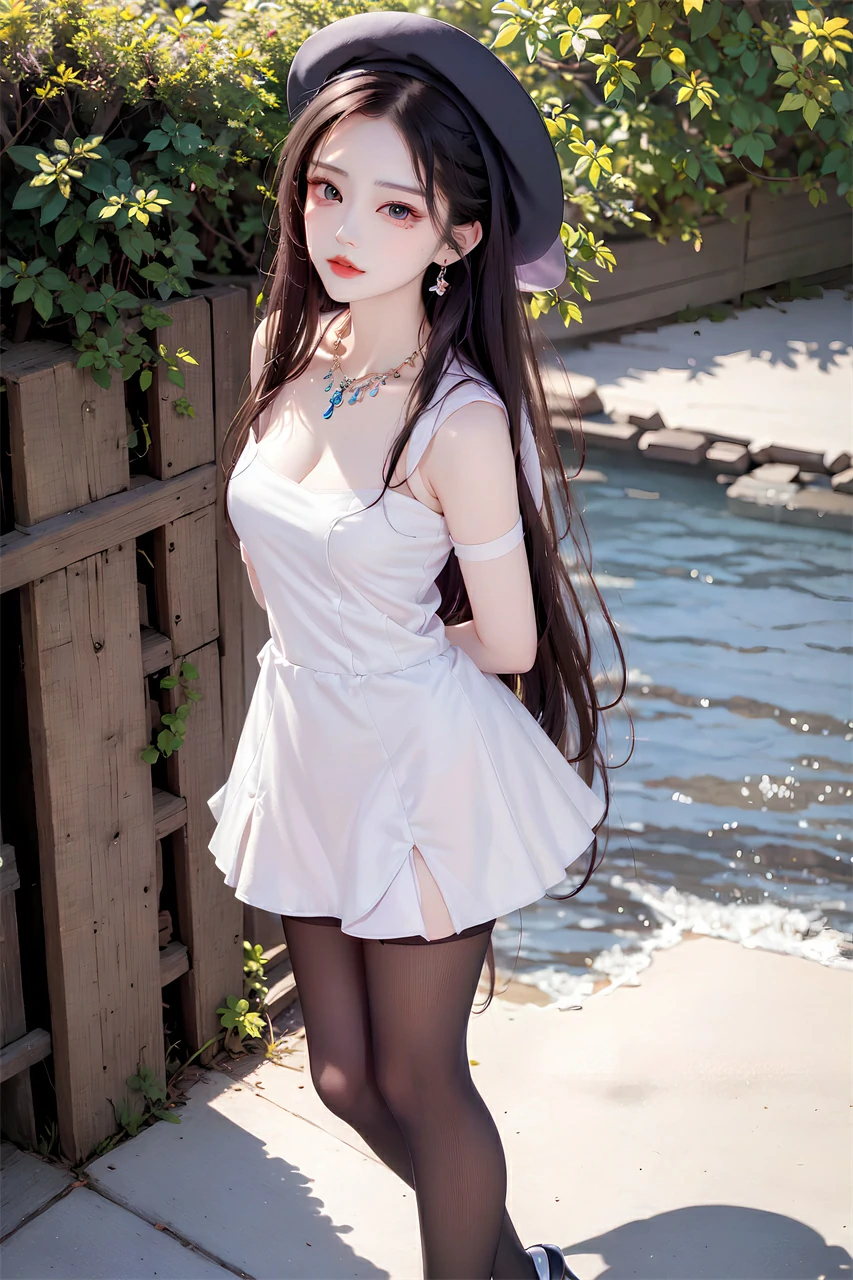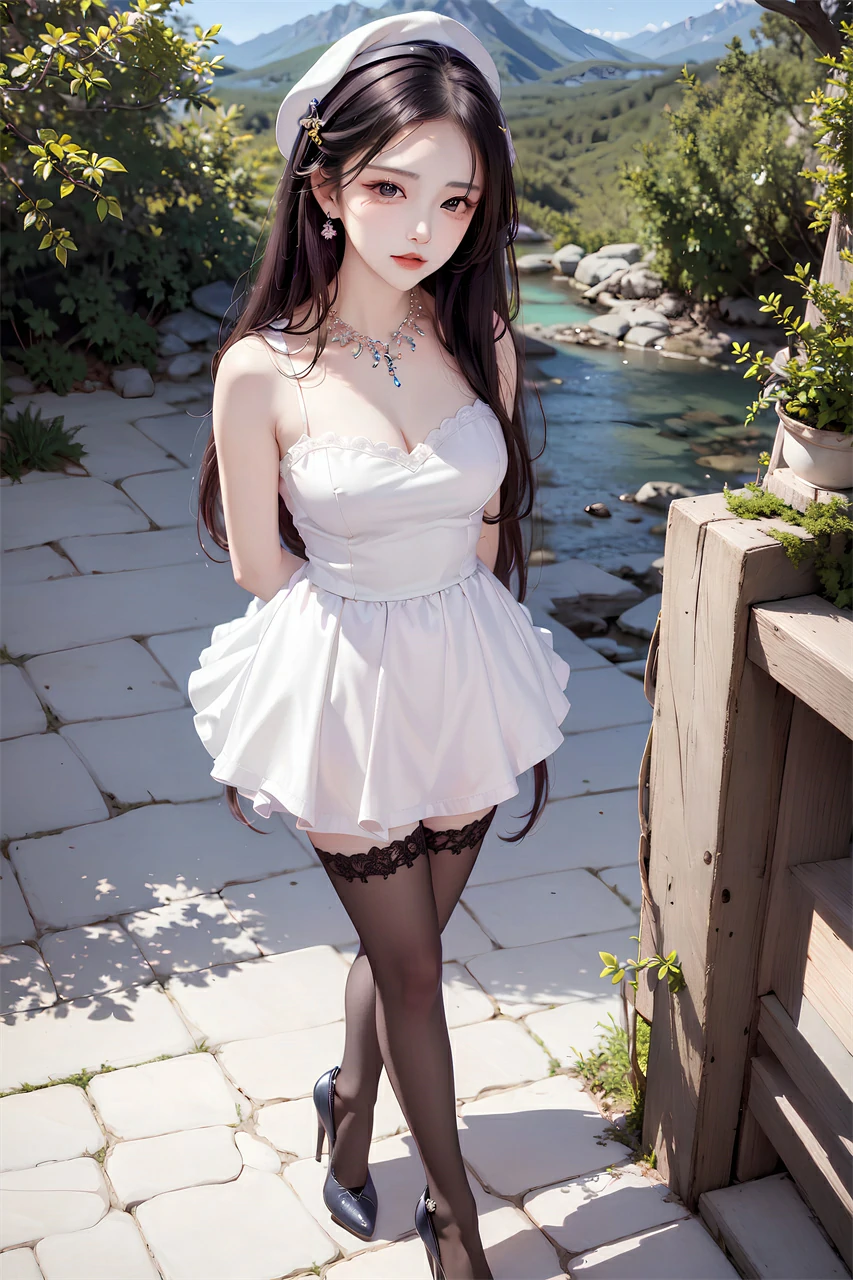 Your girlfriend is wearing a short skirt, a hat, and long hair, very beautiful. She may enjoy the freshness and comfort brought by summer, and accessories and clothing can also make her look more beautiful and confident. When taking photos or chatting, she may often adjust her hairstyle or hat and present a casual aesthetic.