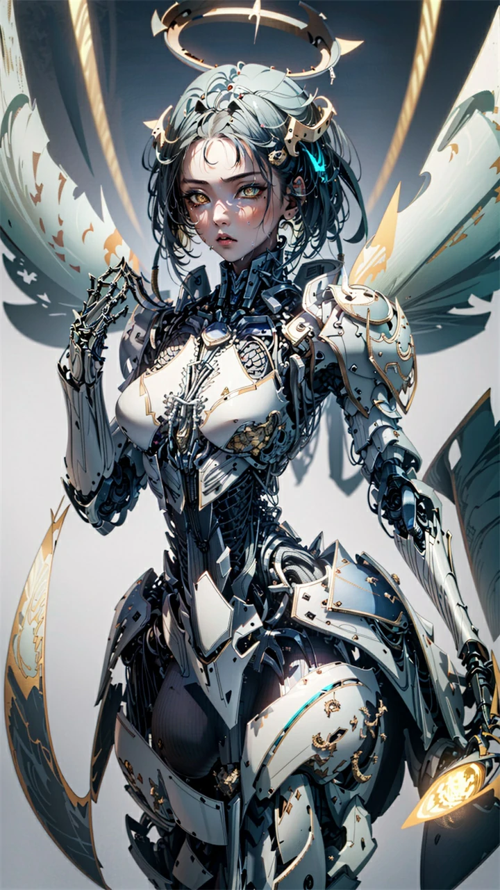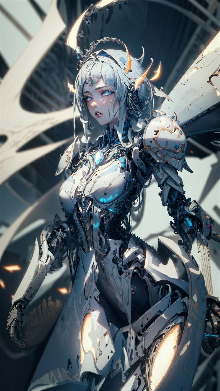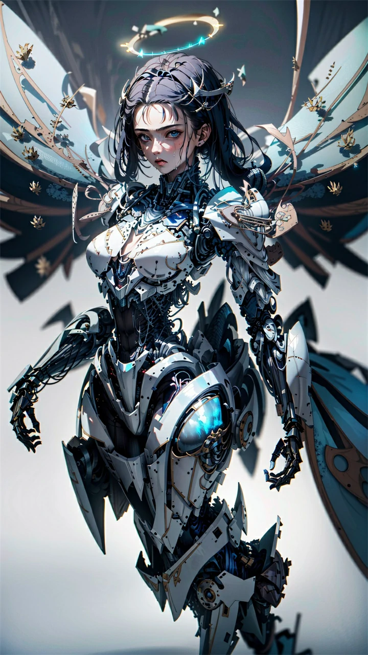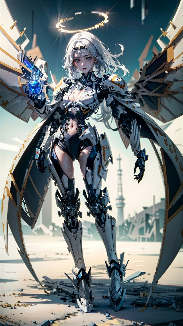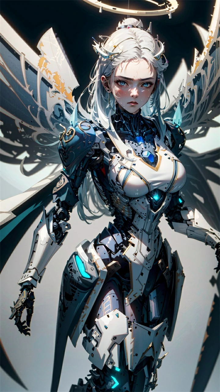 The Radiant Angel mecha is a mecha with beautiful shape and powerful functions. It has a silver white appearance, streamline design and sharp edges and corners. The pattern and color scheme on the chest of the mecha highlight the style of a king. The mecha's arms are equipped with various advanced weapons, such as powerful laser cannons, electromagnetic cannons, and missile weapons, giving it strong combat power.