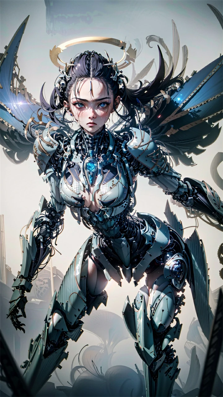 The maneuverability of the mecha is also excellent, allowing it to maintain stability during high-speed movements while also having excellent operational capabilities in the air. Moreover, it is equipped with the latest artificial intelligence processing system, which can quickly make judgments and take action on the battlefield. Overall, the Radiant Angel mecha is not only powerful but also aesthetically pleasing, making it an advanced mecha that can pose a great threat to enemies in battle.