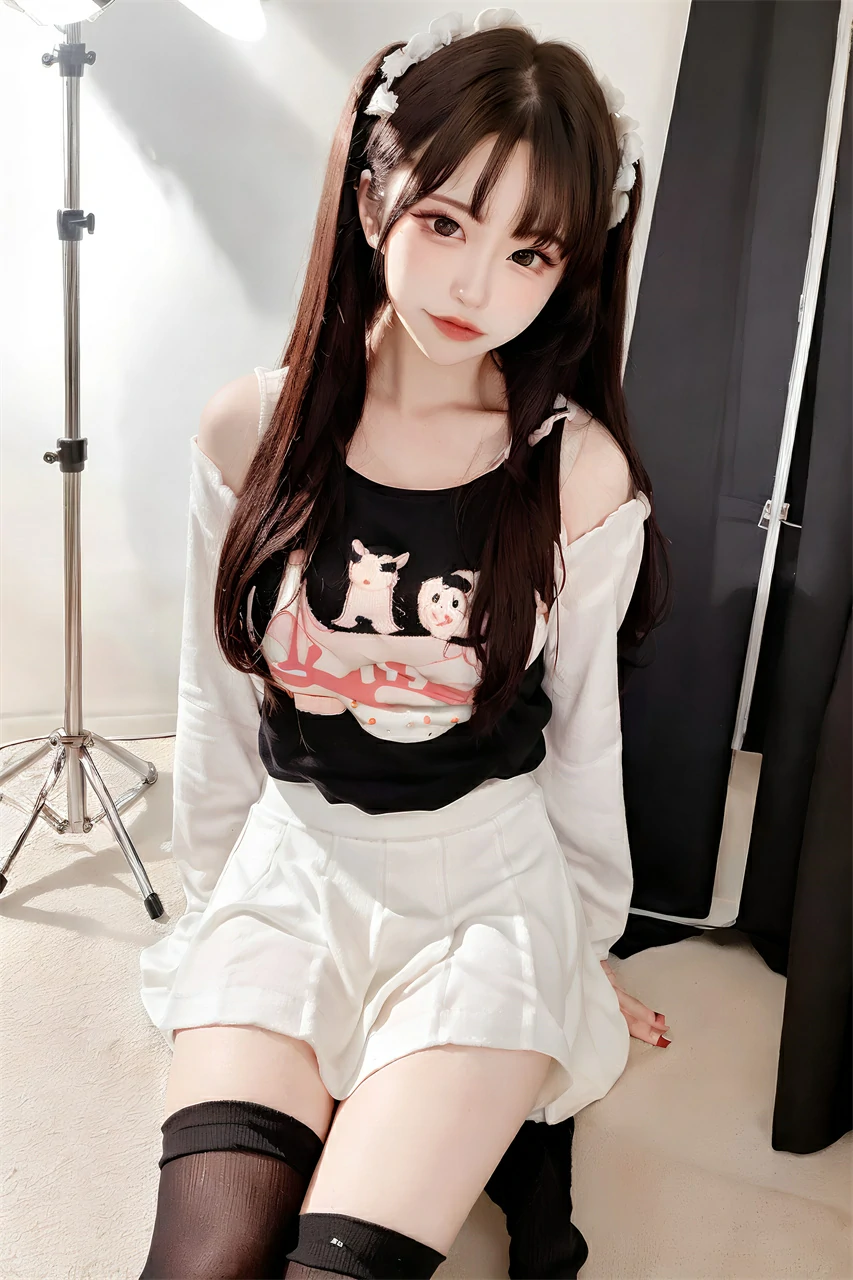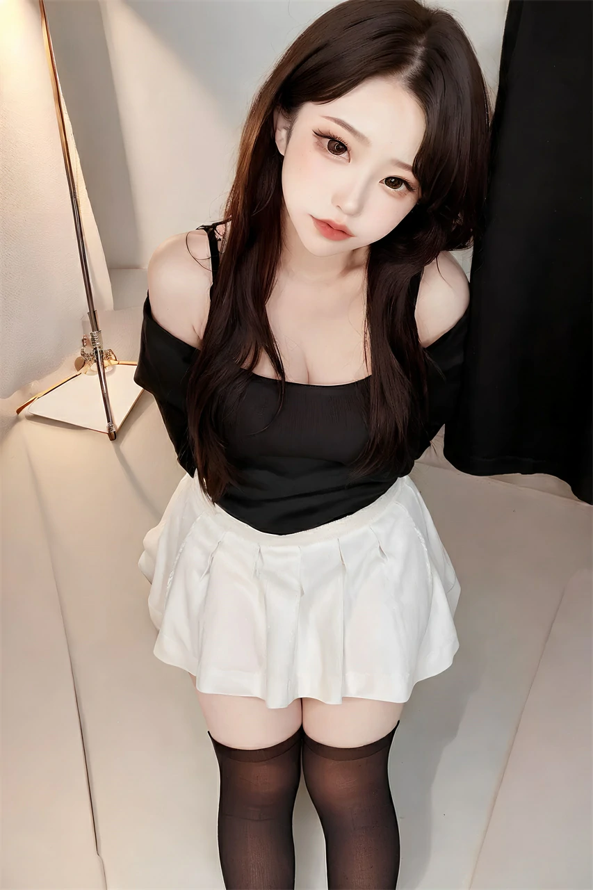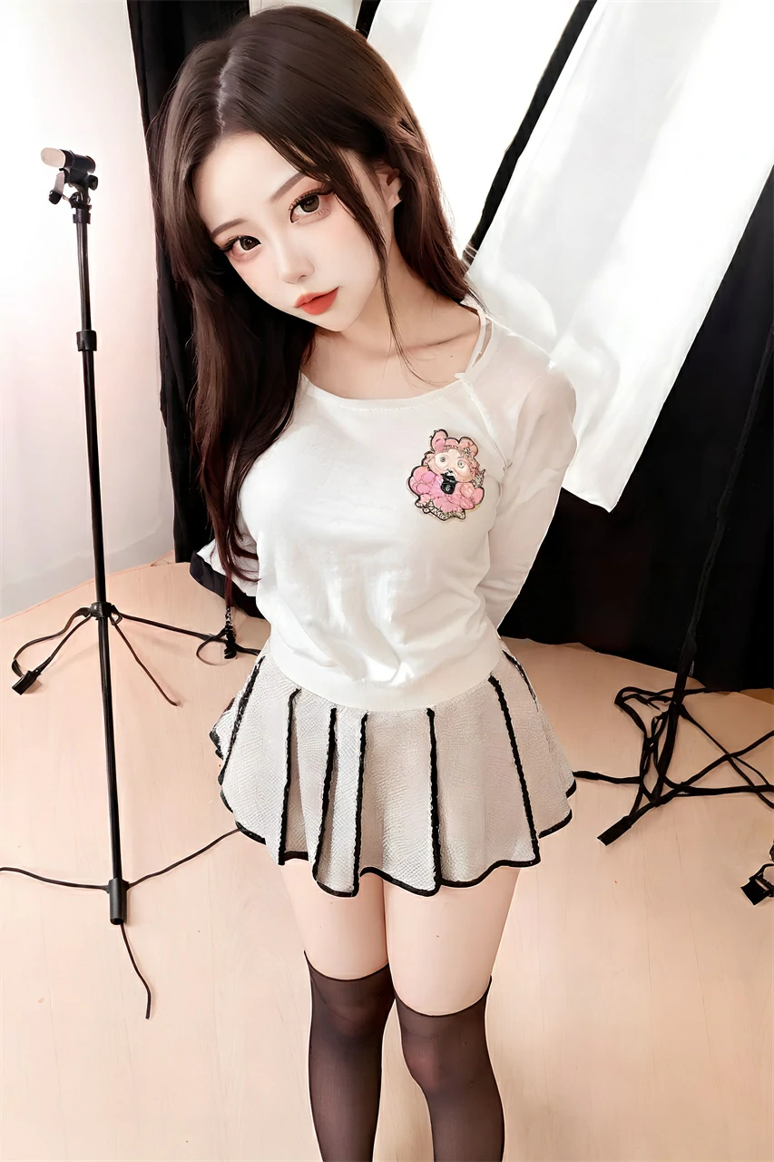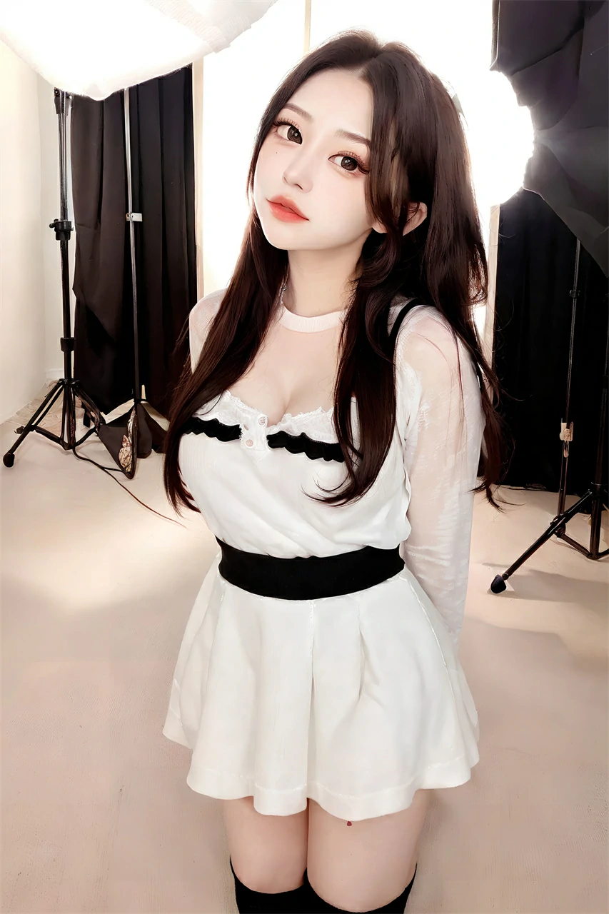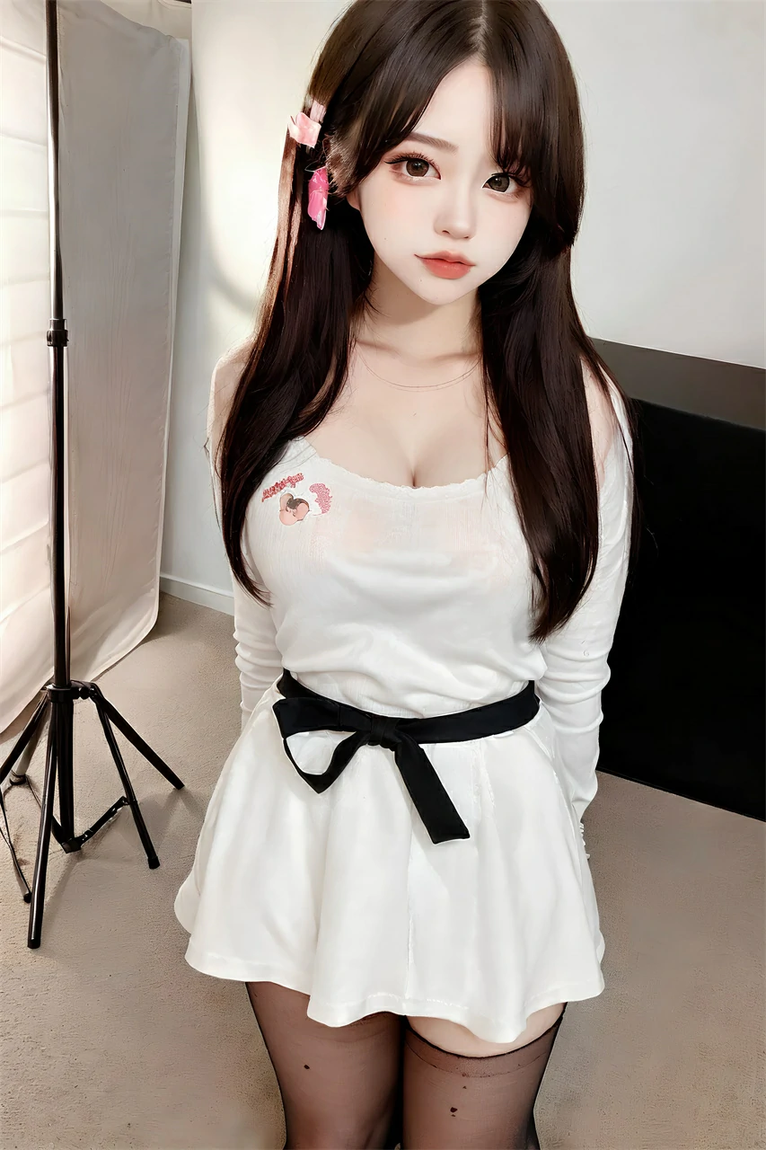 This is a cute girl wearing a white short skirt, exuding an elegant, pure, and noble atmosphere. The white short skirt appeared particularly soft on her body, with a well proportioned figure that was even more charming and charming than flowers.