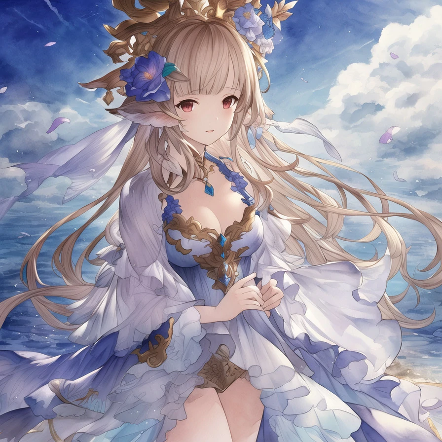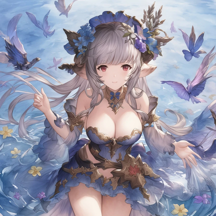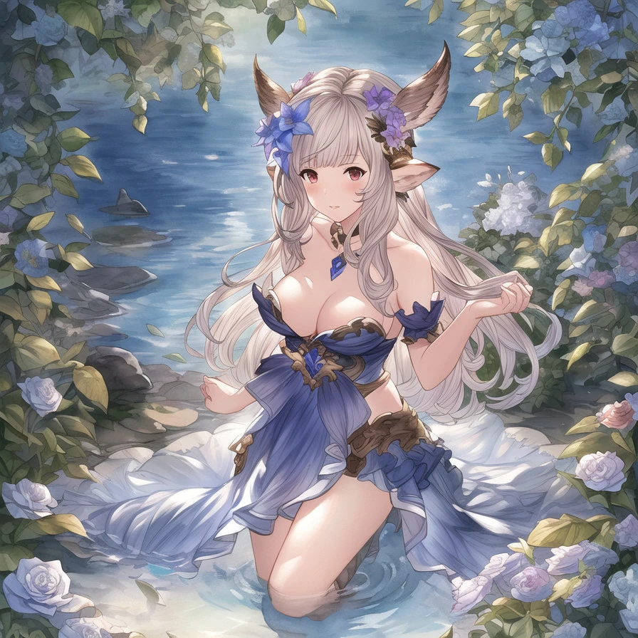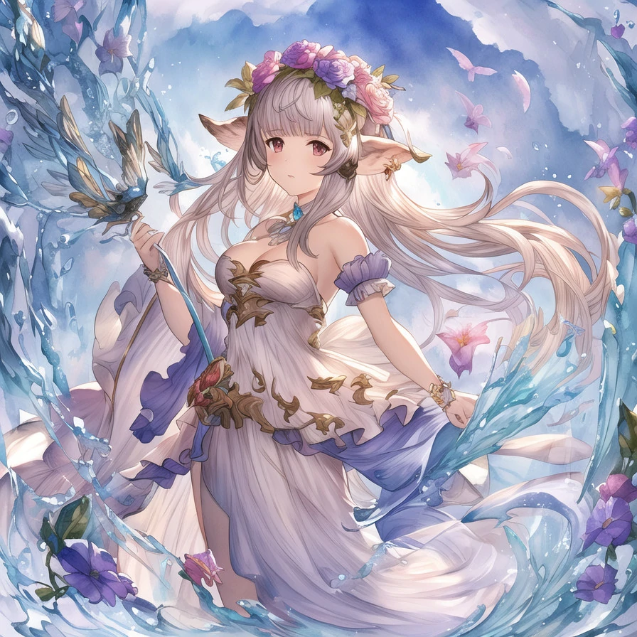 This water elf is a charming creature who plays beside the flowing water, and the sound of the rippling water echoes around her. She has clear eyes and jade like skin, just like a true fairy. Whenever her graceful figure shuttles through the water, splashes of water, and the droplets reflected by the sunlight are poetic and picturesque, as if the entire nature is playing with her.
