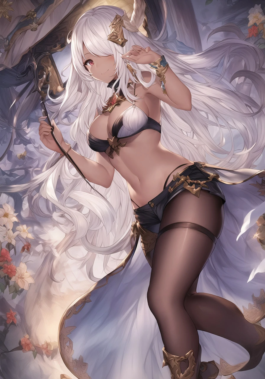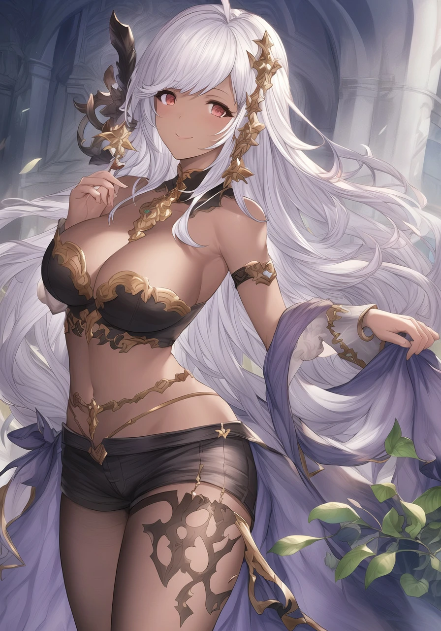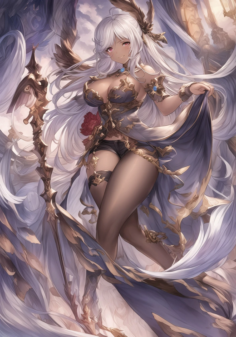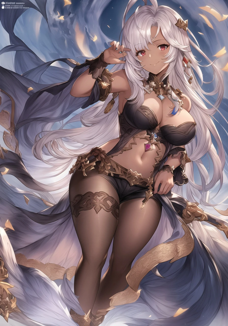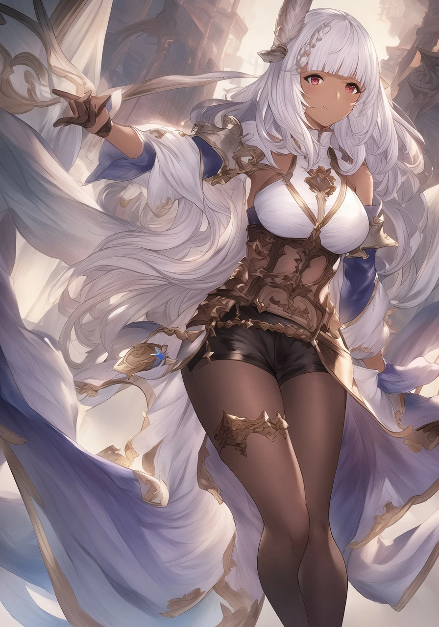 This wheat skinned white haired girl is a unique scenery. Her skin was tanned to a wheat color, harmonious with her silver hair. Her black eyes were as deep as paint, bright and magnificent. Her slightly curled lips exuded a natural pink color, and when she smiled slightly, the whole person became playful and cute. Her figure is petite and delicate, exuding a beautiful feminine vibe everywhere.