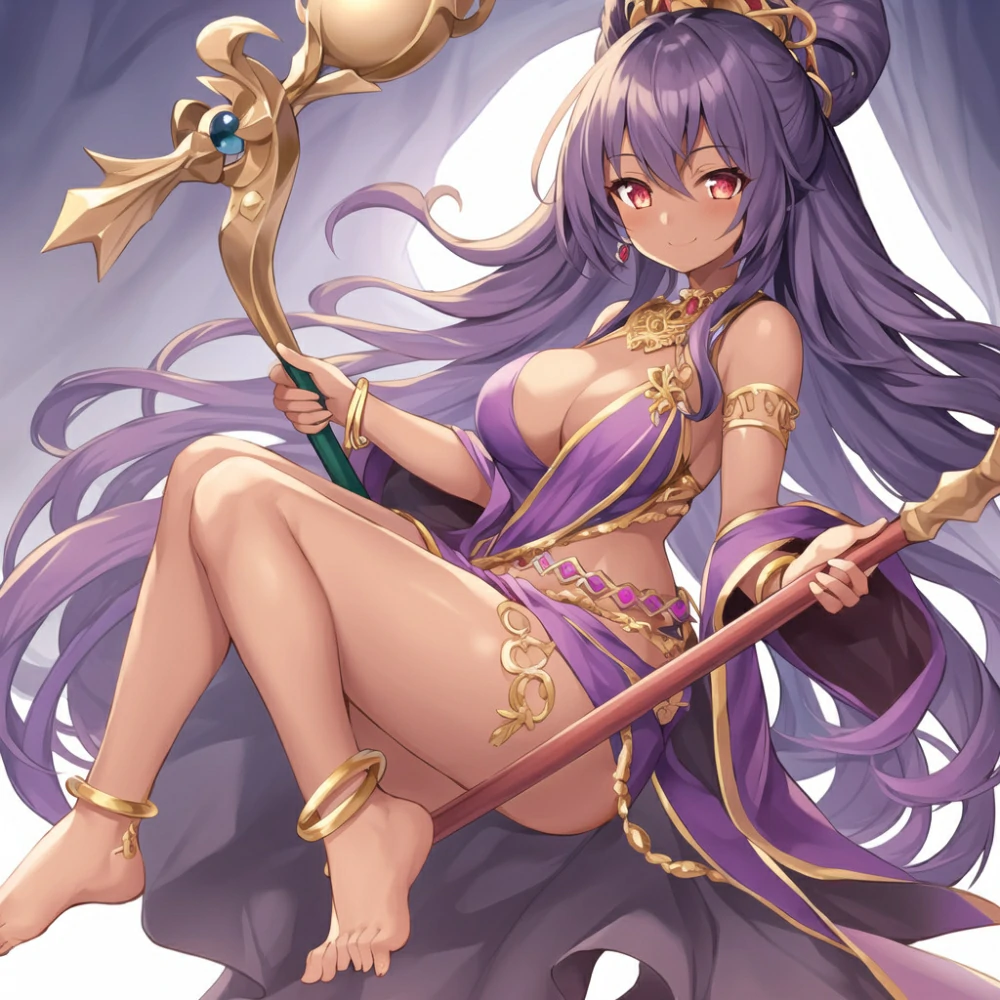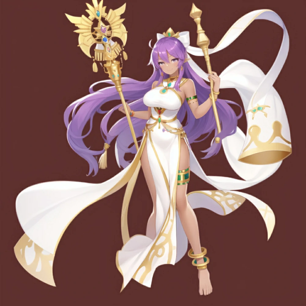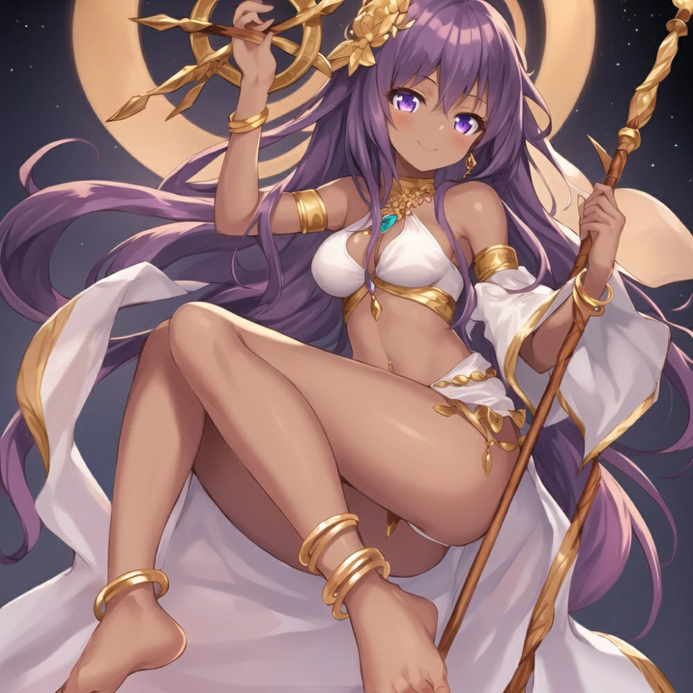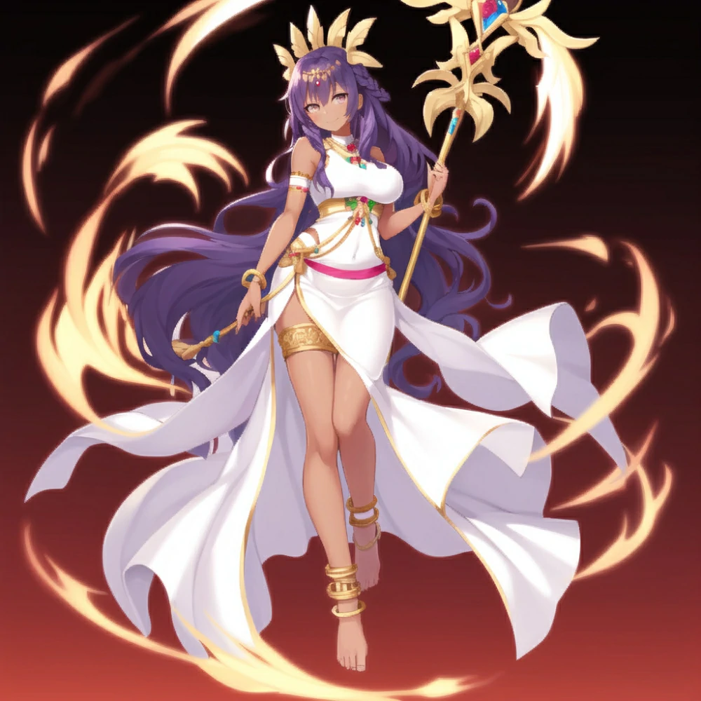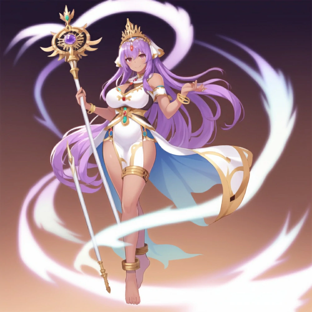She is a goddess with charming purple long hair, always attracting people's attention whenever she passes by. Her long hair is soft, smooth, and beautiful, making it irresistible to touch. Her eyes sparkle with intelligence and wit, always bringing a sense of pleasure to people.