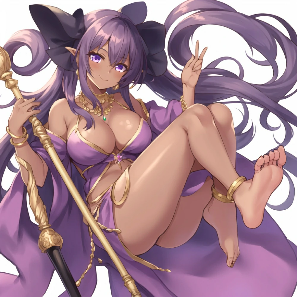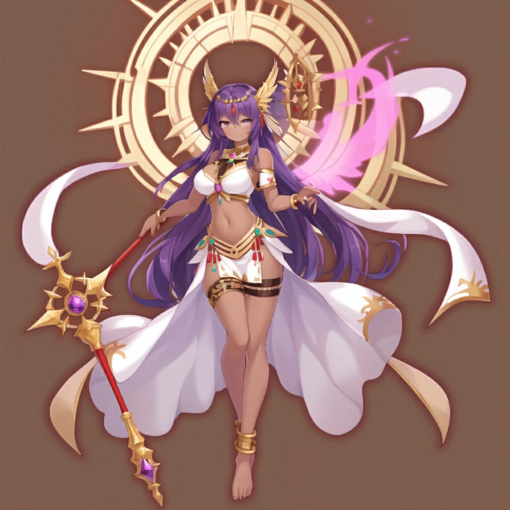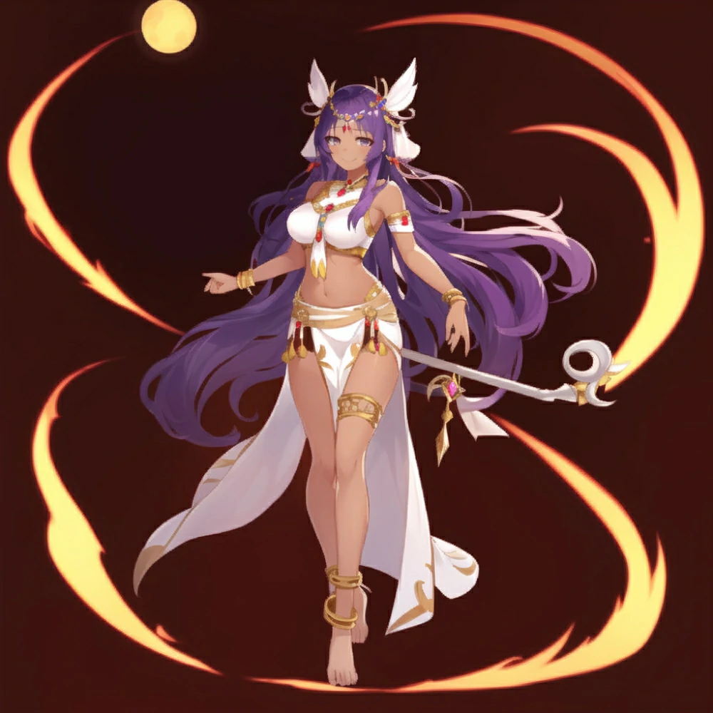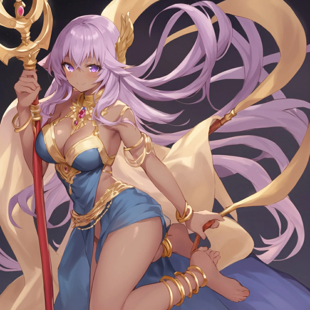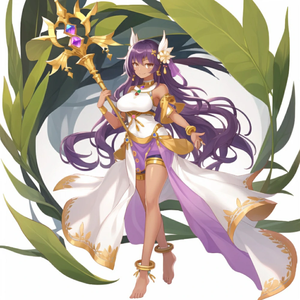 She is a goddess with charming purple long hair, always attracting people's attention whenever she passes by. Her long hair is soft, smooth, and beautiful, making it irresistible to touch. Her eyes sparkle with intelligence and wit, always bringing a sense of pleasure to people.