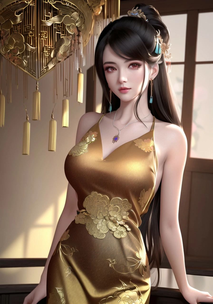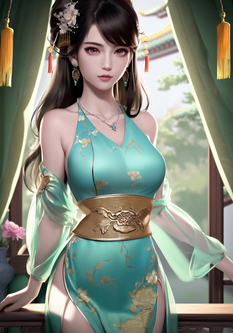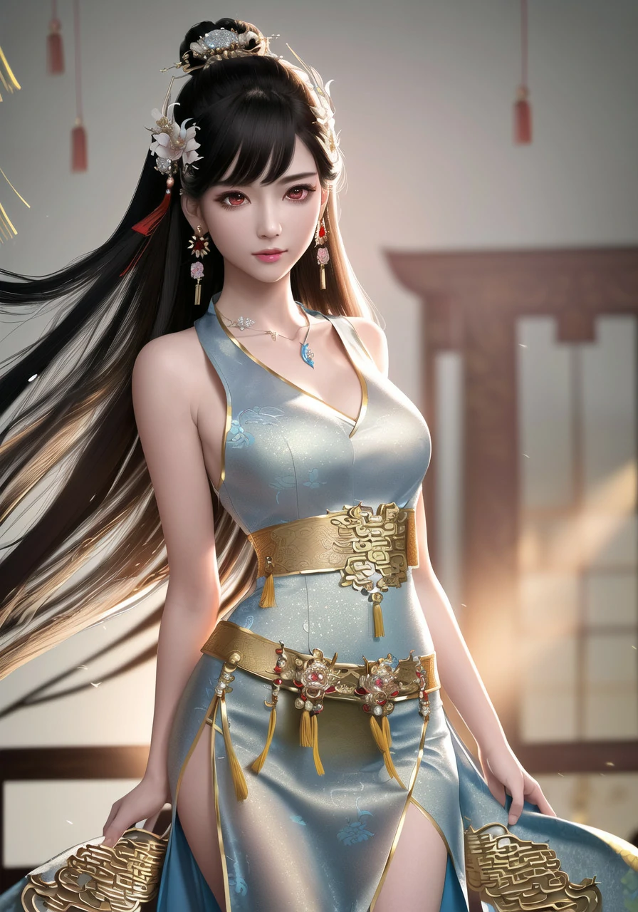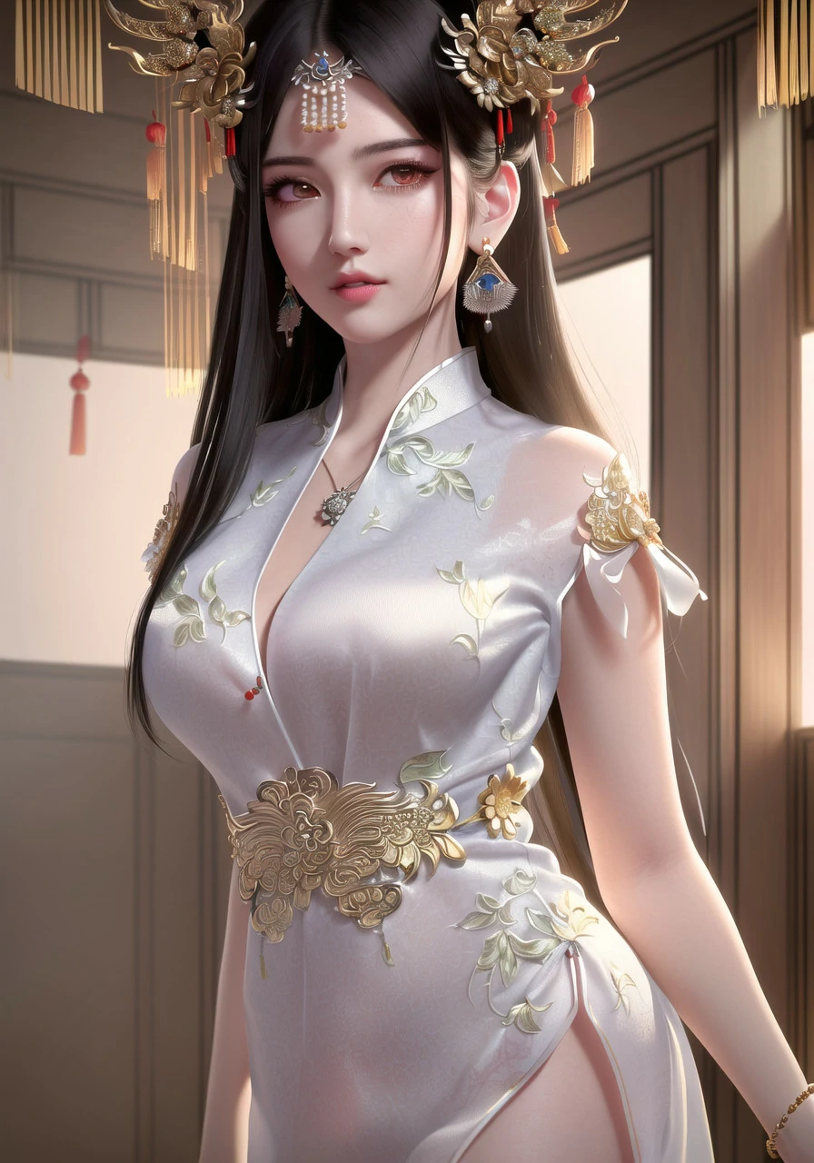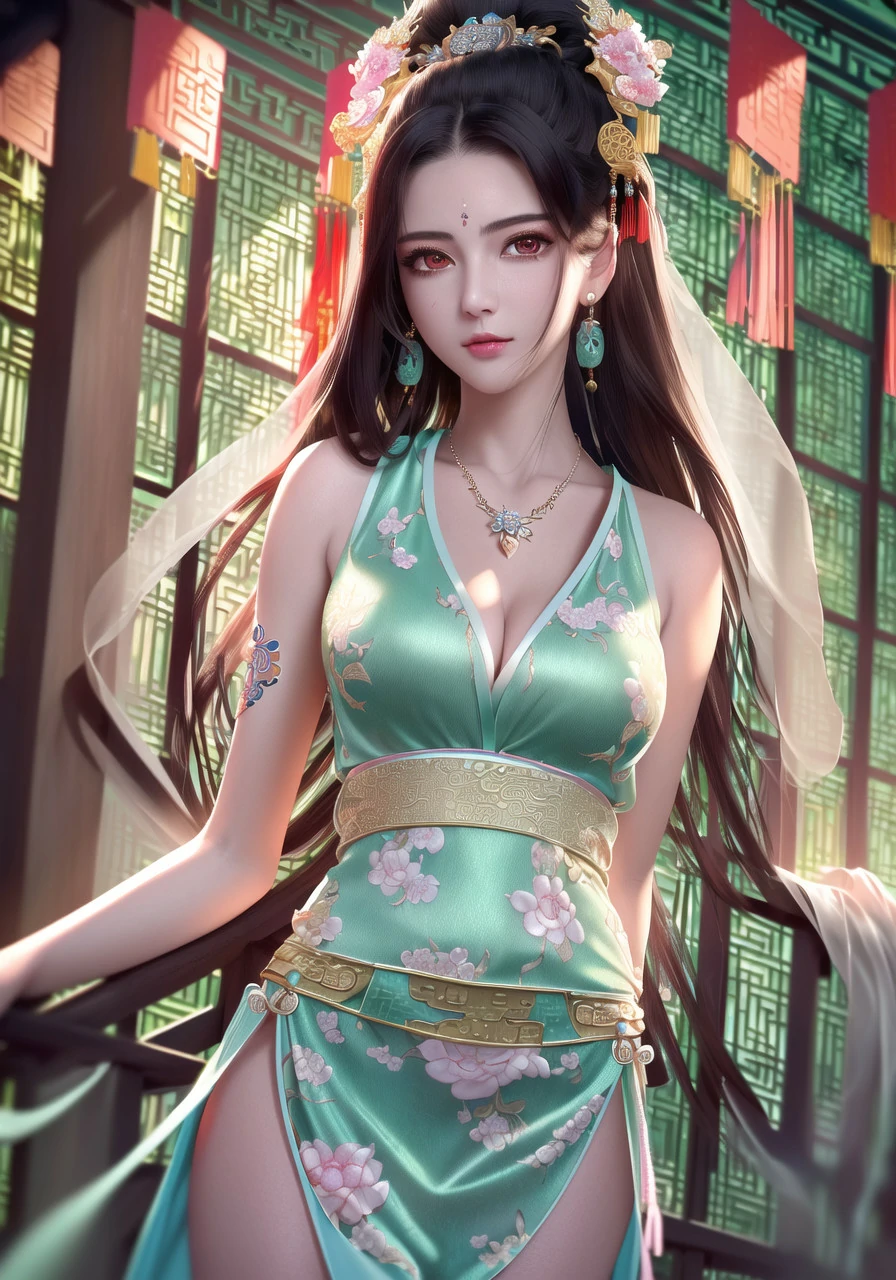 She has an elegant temperament, beautiful and delicate, like a peony in the morning dew. Her appearance is exquisite and beautiful, with every detail perfectly matched, as if it were a perfect artwork. Her petite and delicate figure is graceful, just like a blooming peony, beautiful and moving, making people unable to help but be attracted by her beauty. Her eyes were bright and soft, as if they were two clear morning stars, emitting a charming glow.