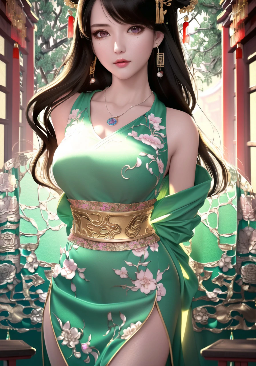 The fragrance on her body is like a cluster of clouds at dawn, emitting a fresh and pleasant atmosphere, making people forget all their troubles and sorrows. That aroma seems to travel through time and space, refreshing and intoxicating. Every trace of fragrance seems to be a reflection of her elegant and graceful appearance and personality, making people marvel at her brilliance and uniqueness. The aroma is both smooth and delicate, like a flower blown by the spring breeze, light and beautiful.