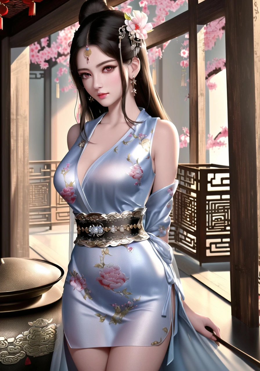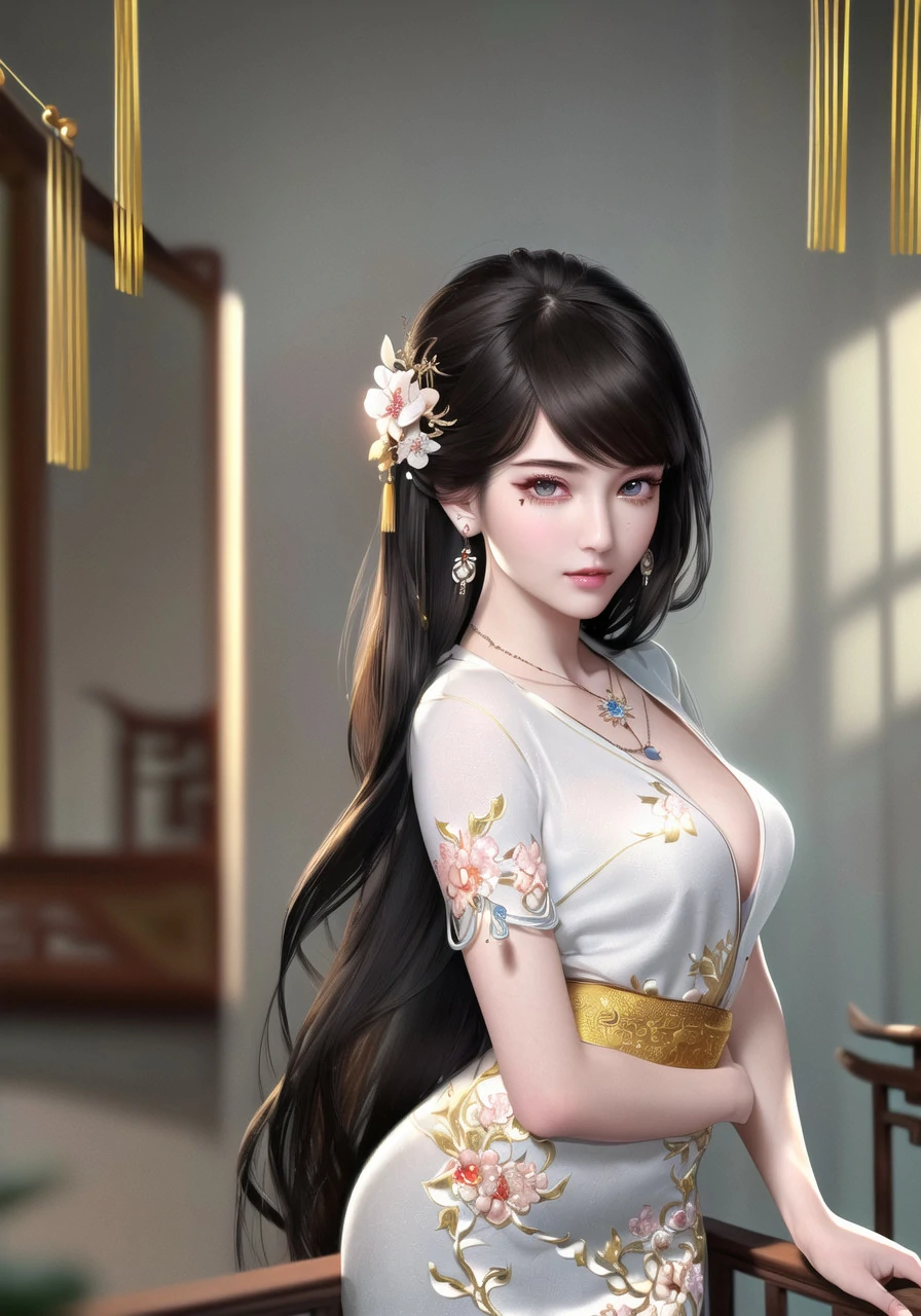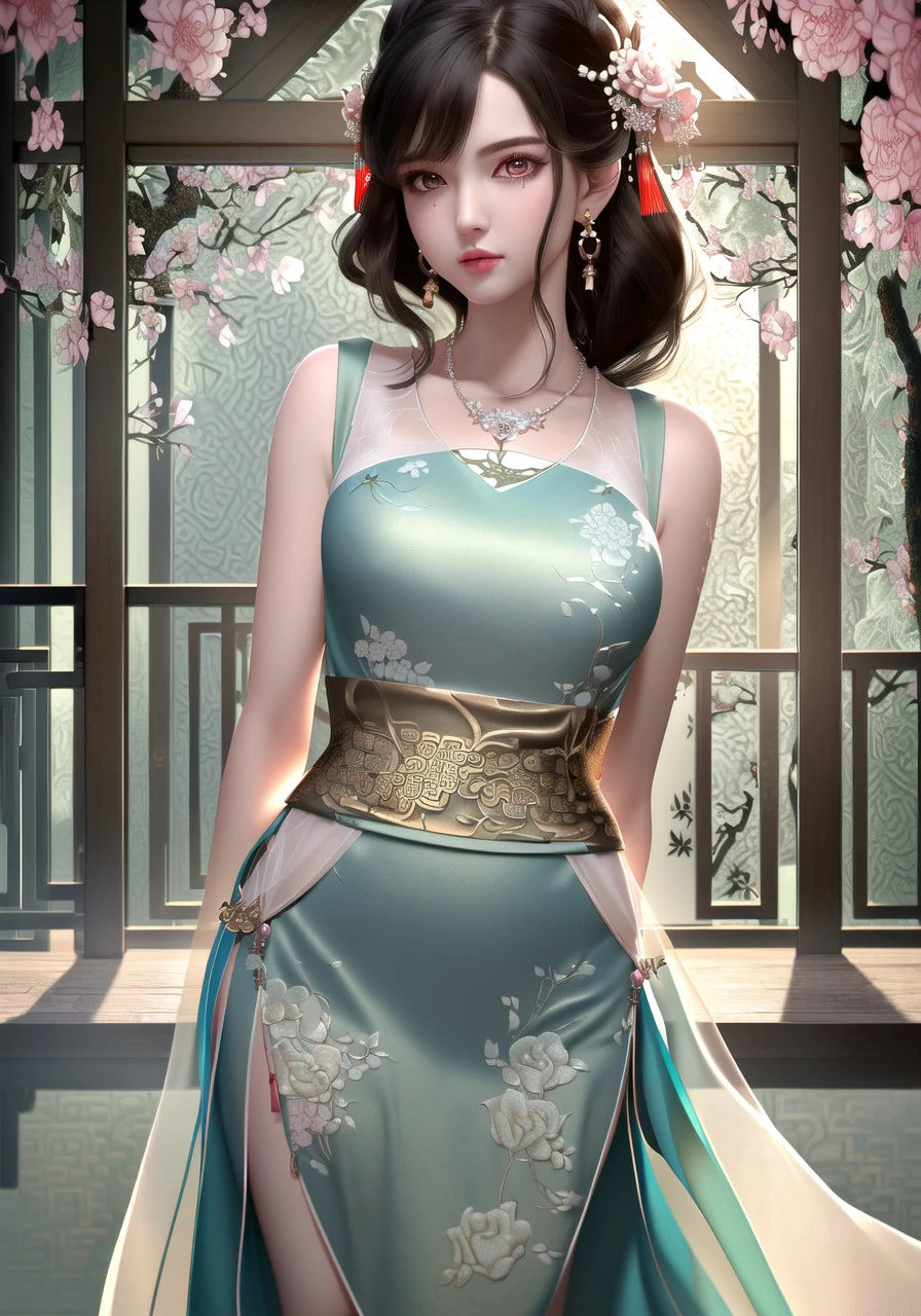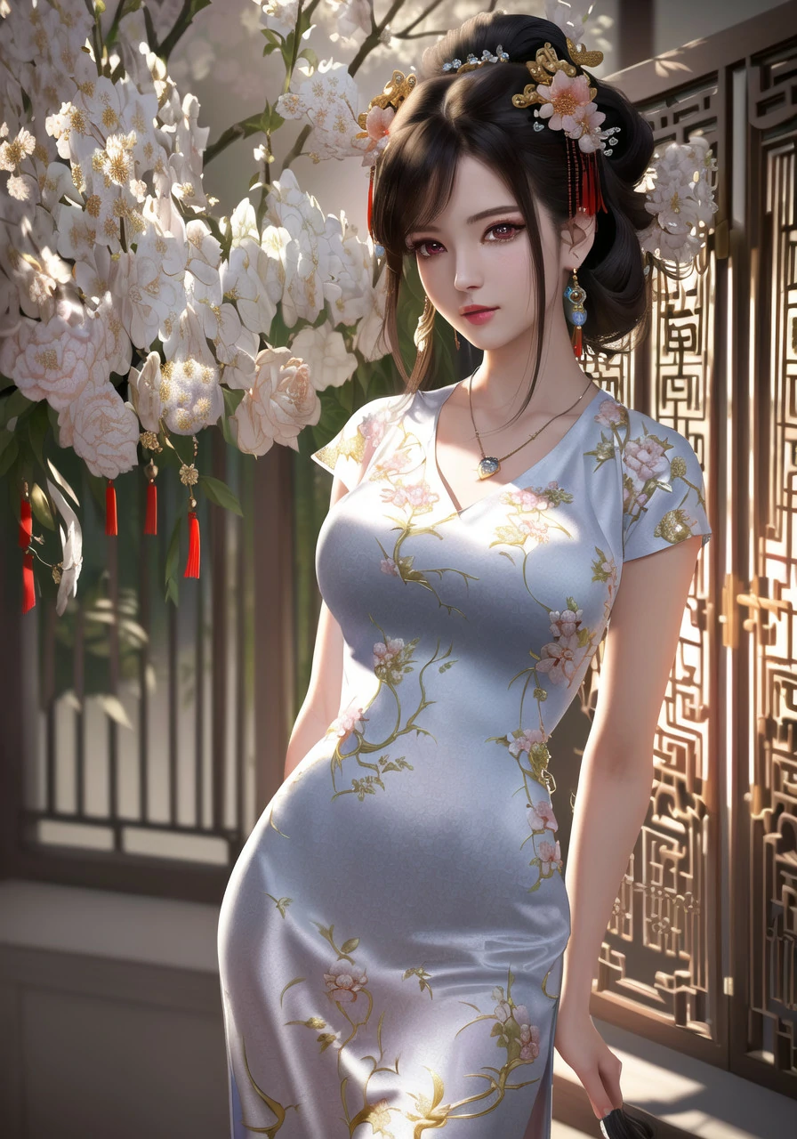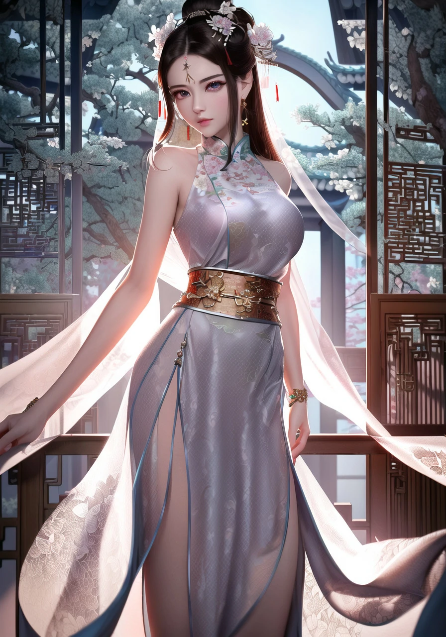In the rain, her figure became more graceful and moving, as if coming through time and space, carrying the scent of spring, making people feel the infinite charm of vitality. She is like a flower in spring, beautiful and moving, making people want to get closer and savor the fresh breath emanating from her body.