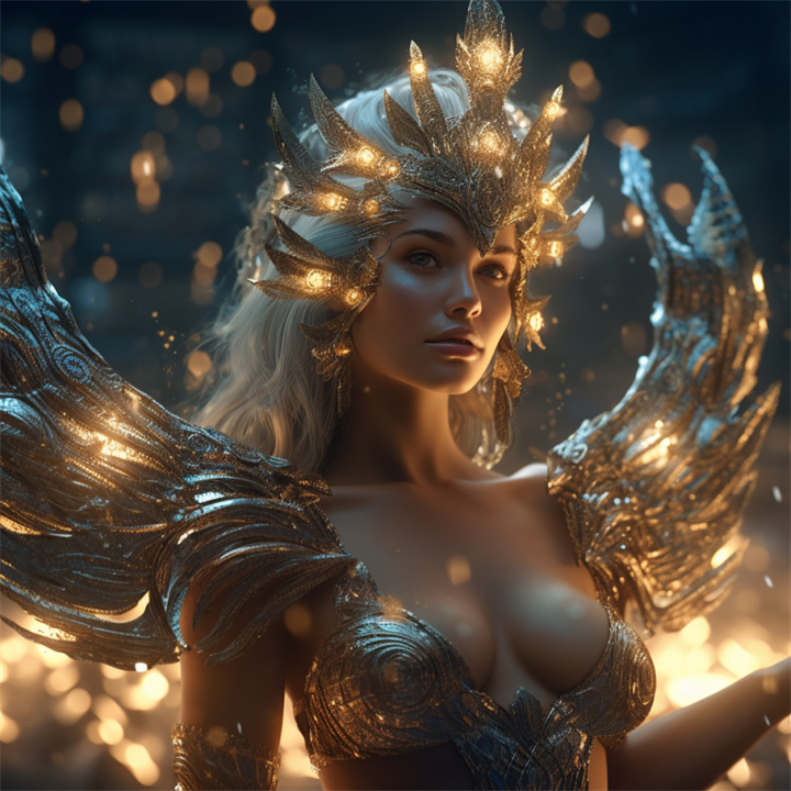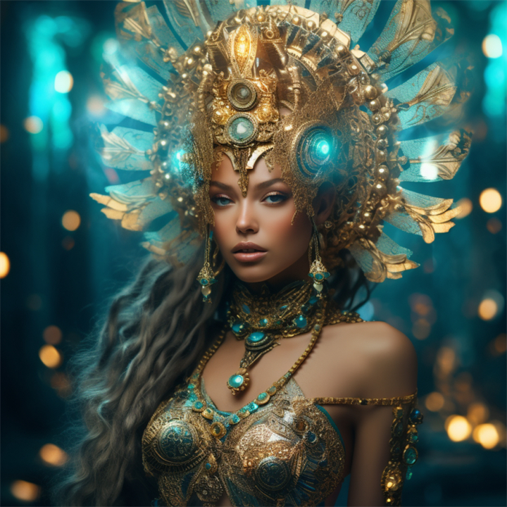 The magical queen who controls everything is a terrifying existence. She is a symbol of power and magic, ruling her realm with unparalleled power. Wearing a robe, emitting a magical glow. She may be wearing a headdress or crown, and her skin may be pale and smooth, giving a sense of extraordinary detachment. Her eyes revealed wisdom and strength.
