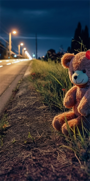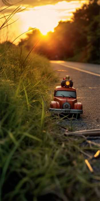 On the rural road filled with memories, there are various toys carrying childhood memories, waiting quietly as if they have their own lives.