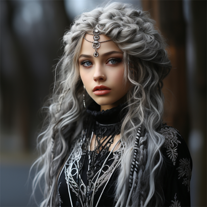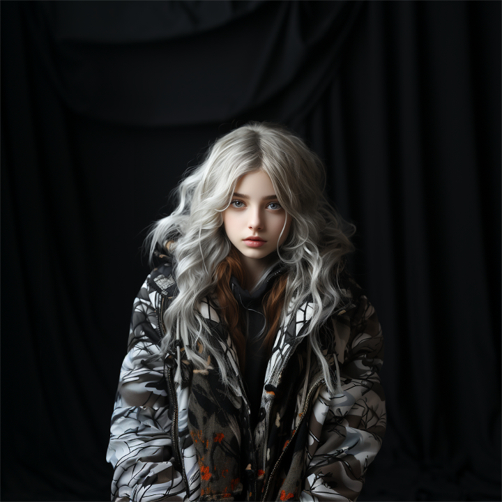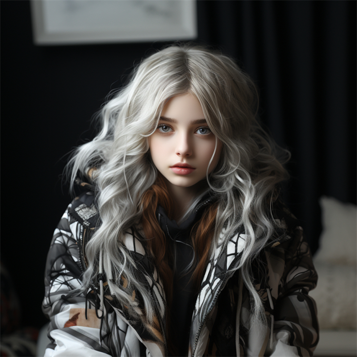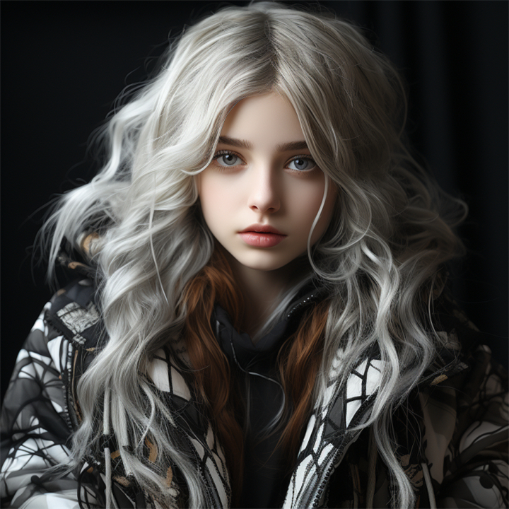 A little girl with beautiful white hair. Her pure and flawless silver curls were like winter snowflakes, shining warm in the sunlight. Her eyes were bright and agile, like a shining star, revealing her ingenuity and pure curiosity.