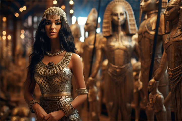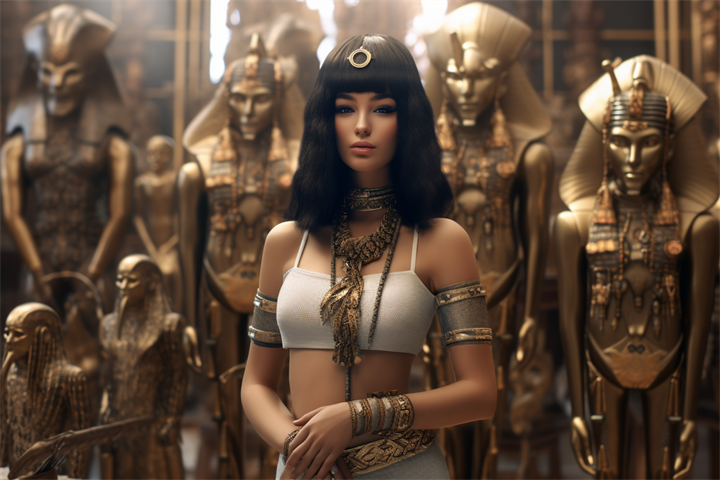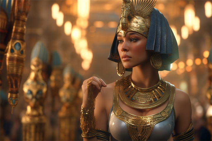 The ancient Egyptian Cleopatra were all peerless beauties with beautiful faces and delicate and three-dimensional facial features. A dense and smooth dark brown hair, which may be as long as the waist or longer, often coiled or woven into a gorgeous hairstyle. Her eyes were adorned with sparkling eyelashes, small and bright, revealing wisdom and confusion.