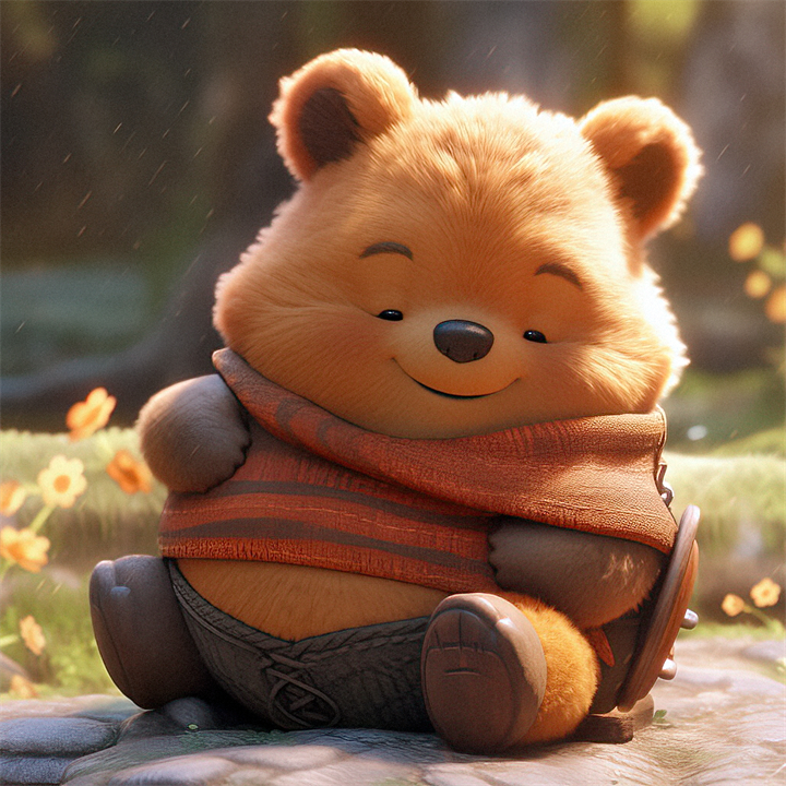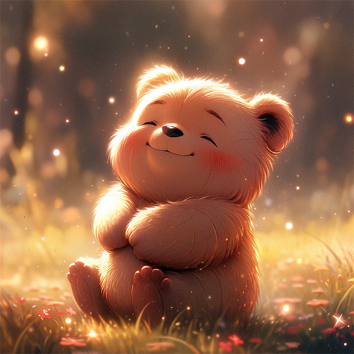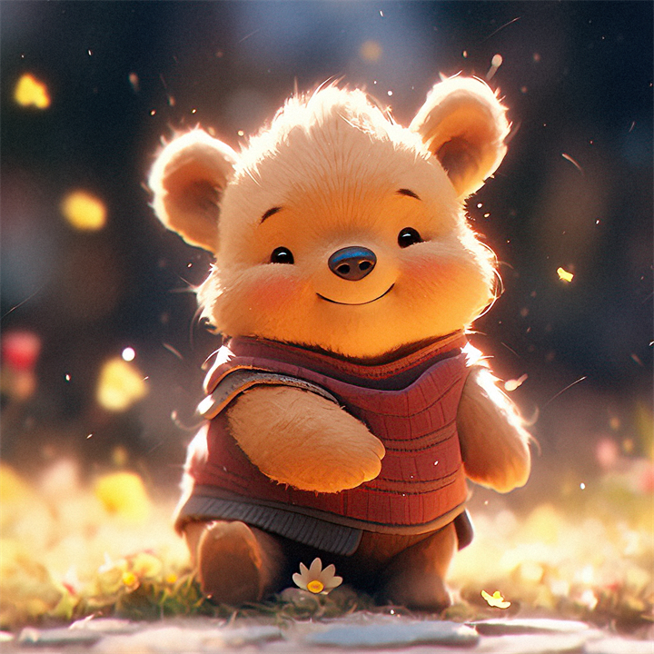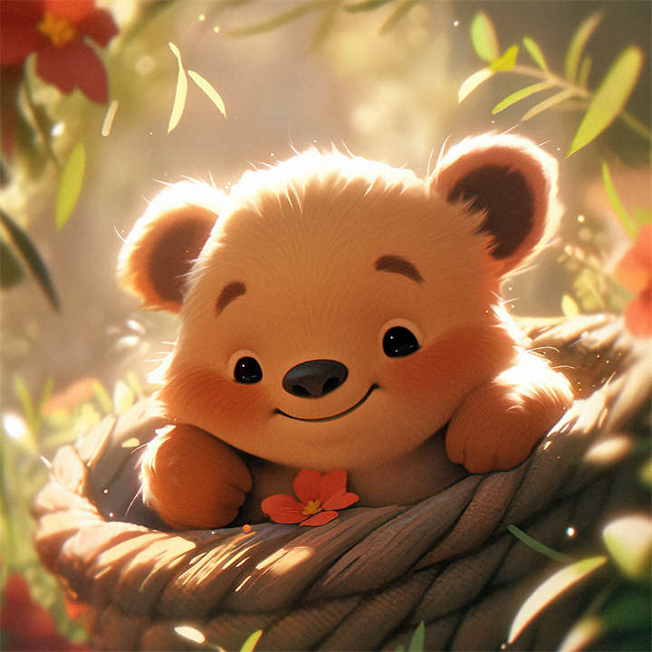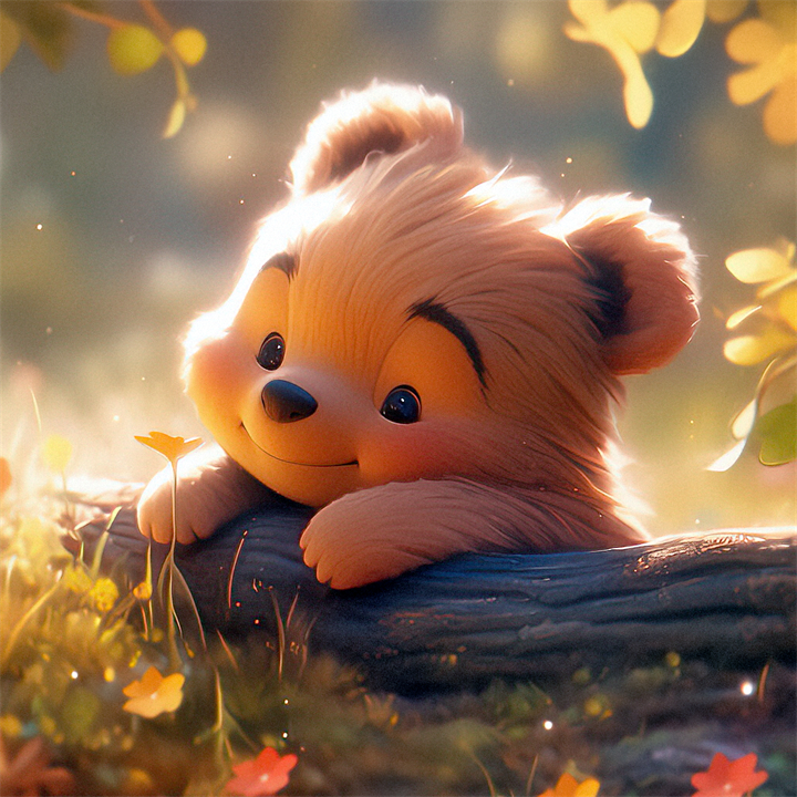 The little bear in the forest is a cute and charming creature that lives in dense forests and is one of the main residents of the forest. Their fur is soft and thick, giving people a warm feeling. They usually have a pair of round and flexible ears on their faces, which can help them hear the sounds around them. The eyes of a teddy bear are usually large and round, revealing a quick and curious expression. Their noses are large and sensitive, used to sniff food and sense surrounding odors.