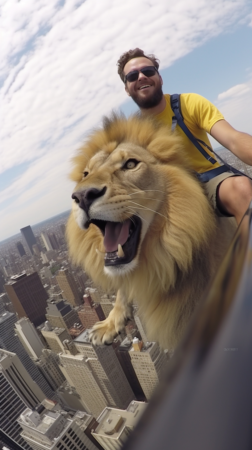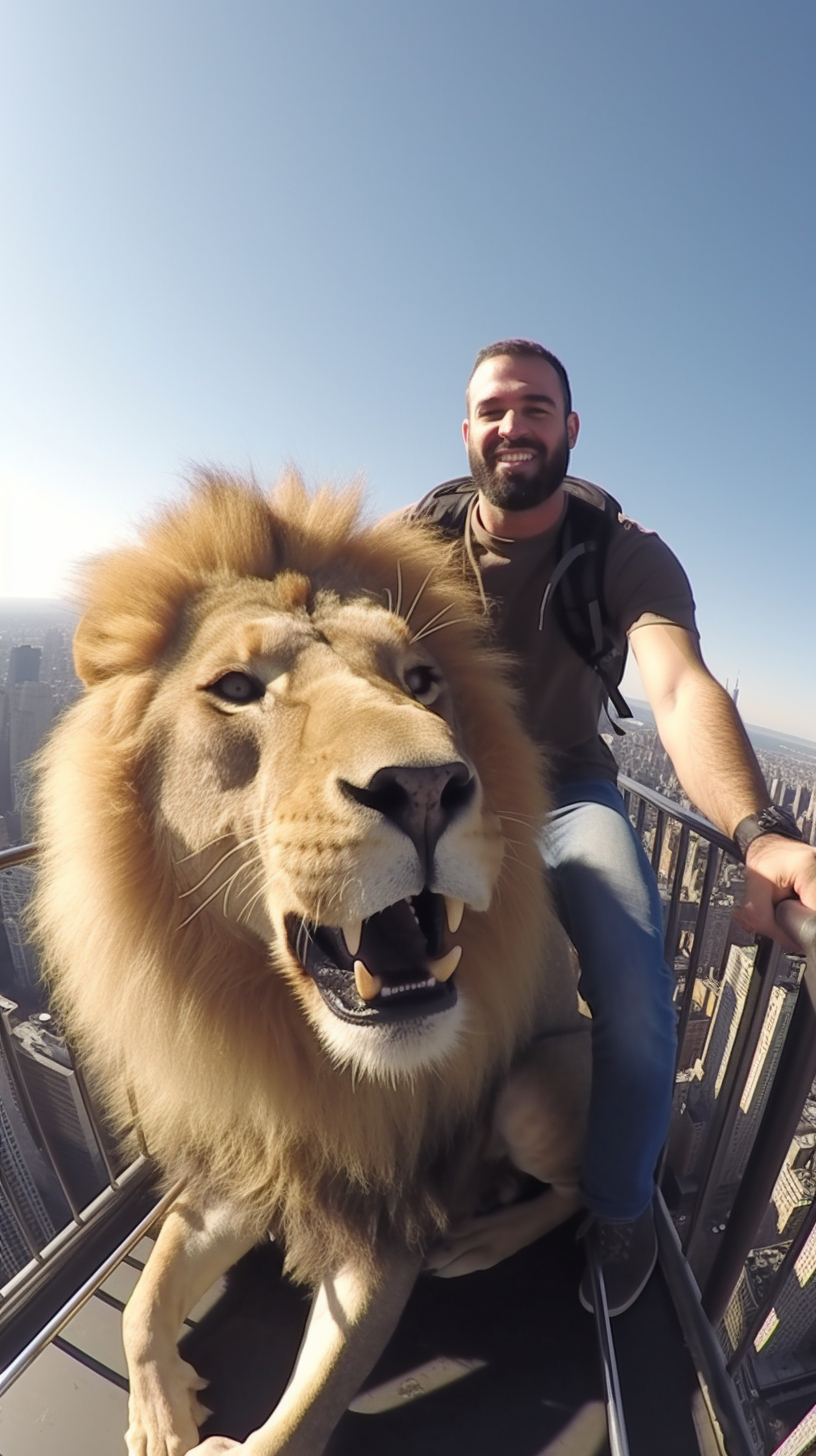 Taking a group photo with a fierce lion and a strong gorilla, these are some incredible photos. With a big brain, these extraordinary phenomena can become reality, giving people the illusion of bringing zoo animals home.