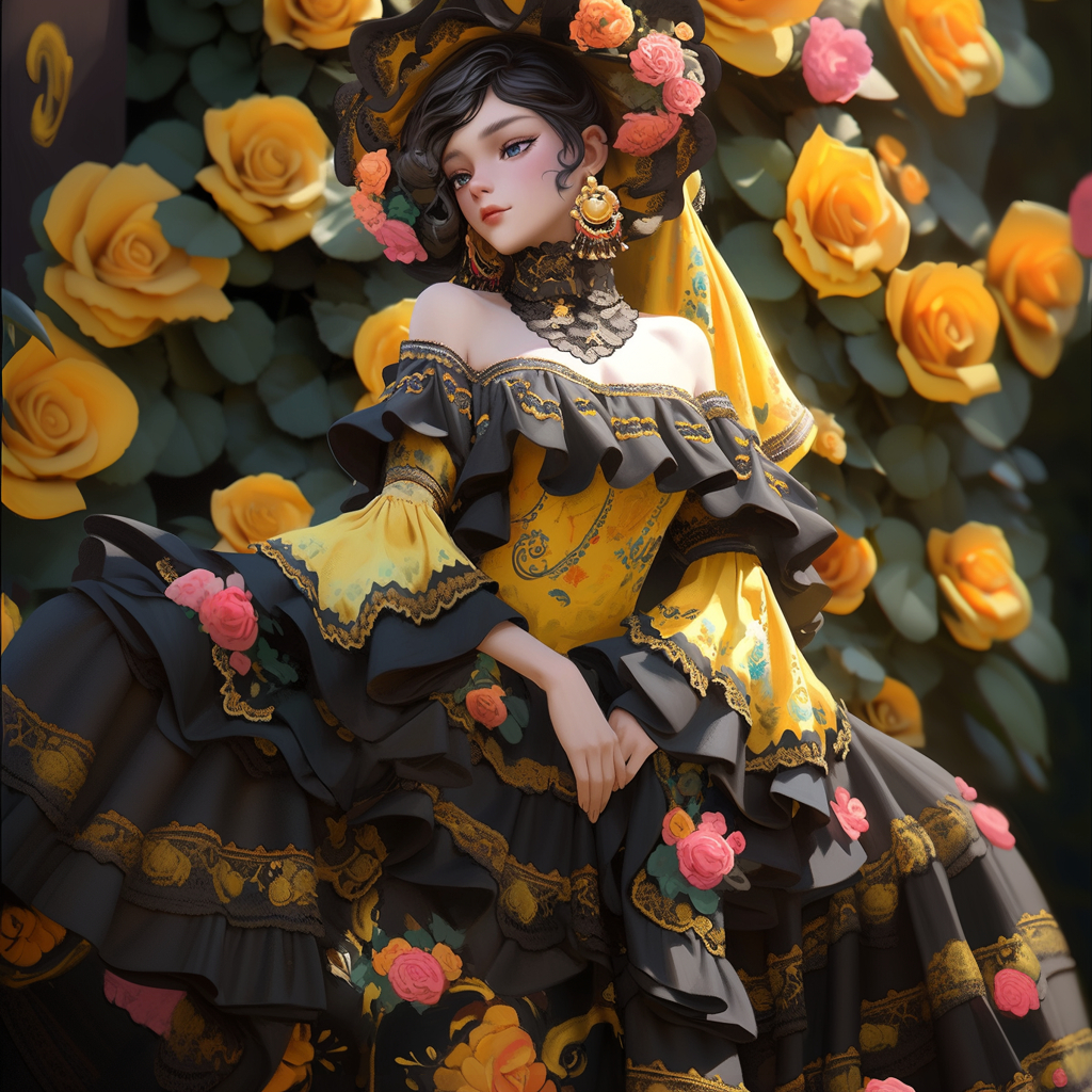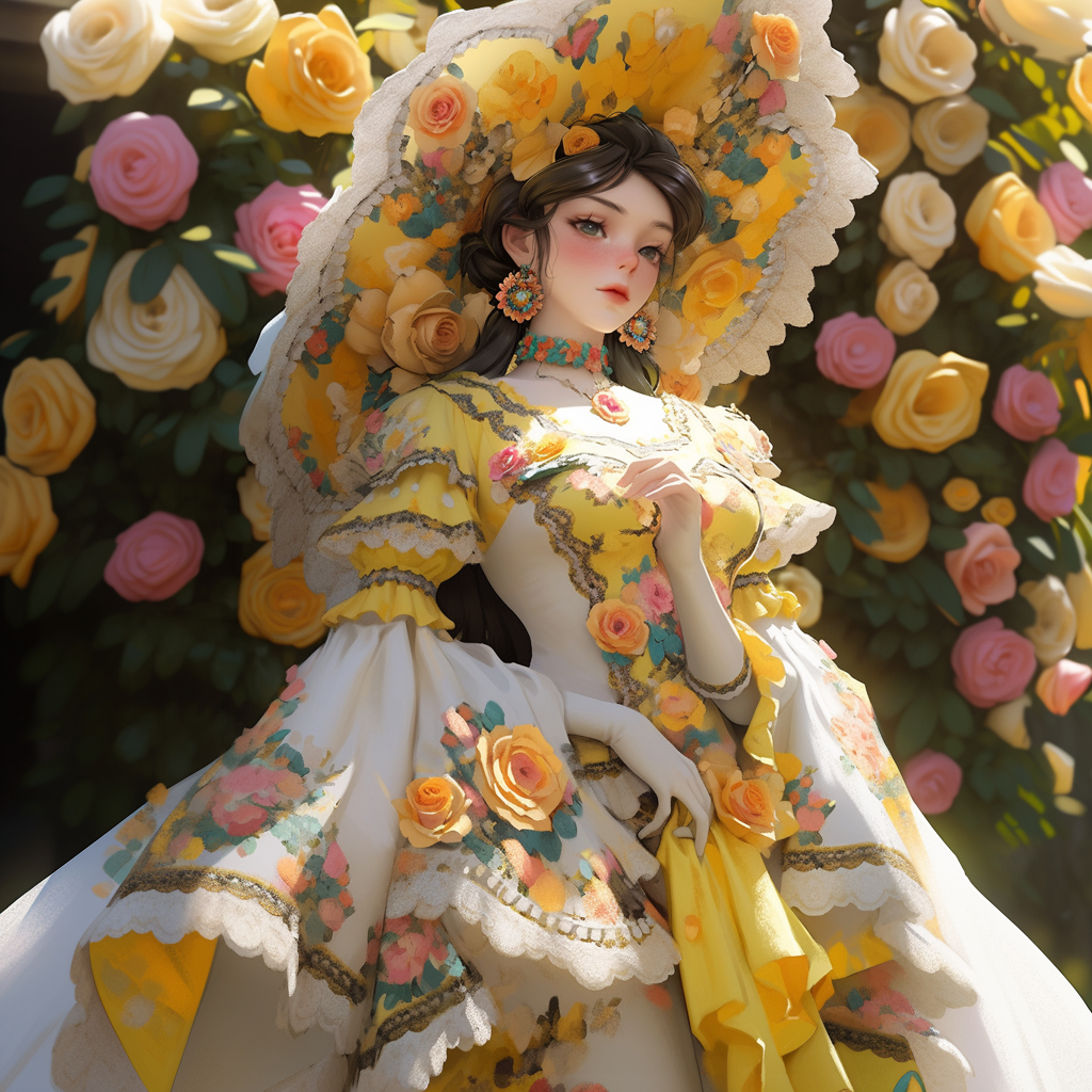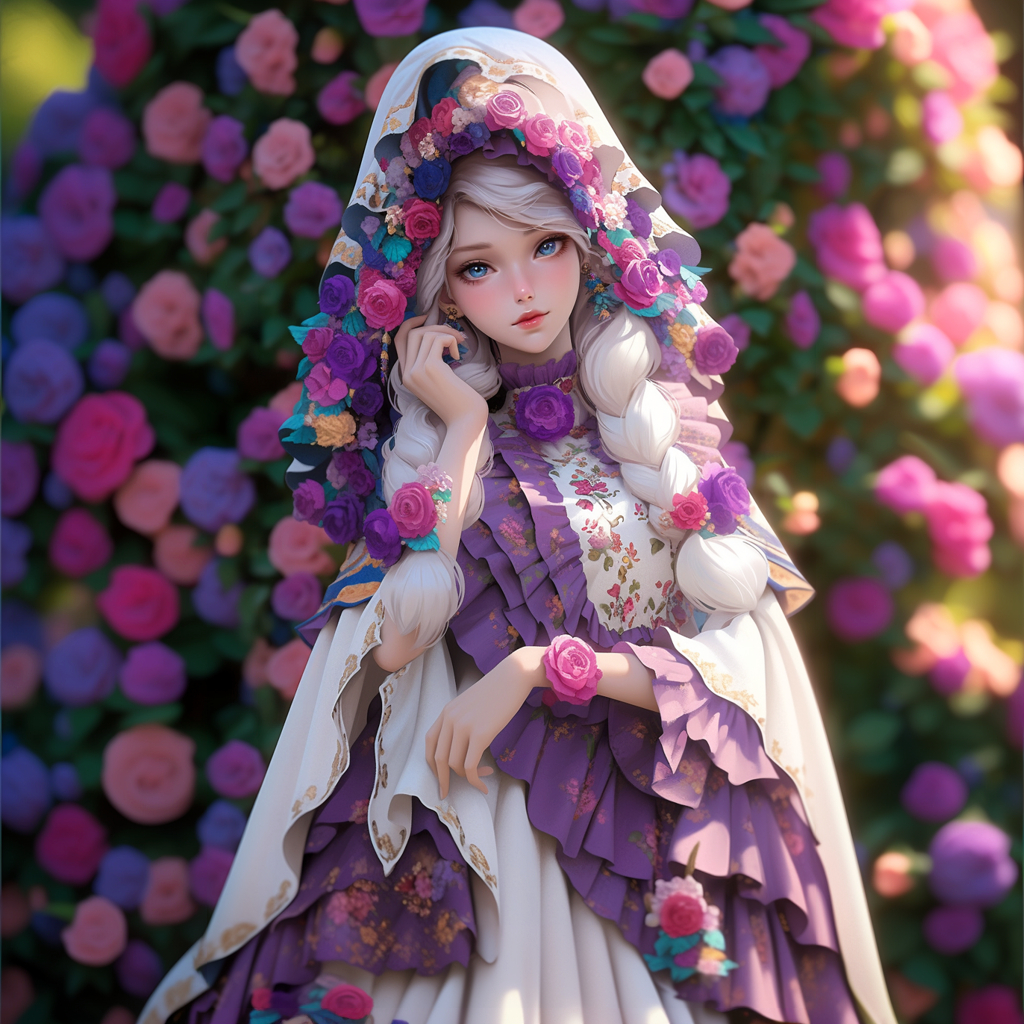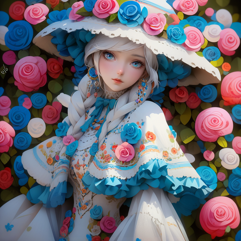 The beauty in the sea of flowers is a romantic and poetic imagination that combines beautiful flowers with charming women. In the sea of flowers, beautiful women walk gracefully and confidently surrounded by colorful flowers. Her long hair fluttered in the wind, with a gentle and pleasant smile in her eyes. She walked through the dense flowers, complementing the colors of the flowers like a fairy.
