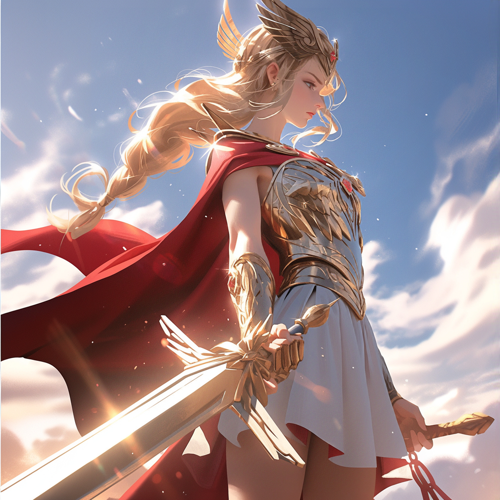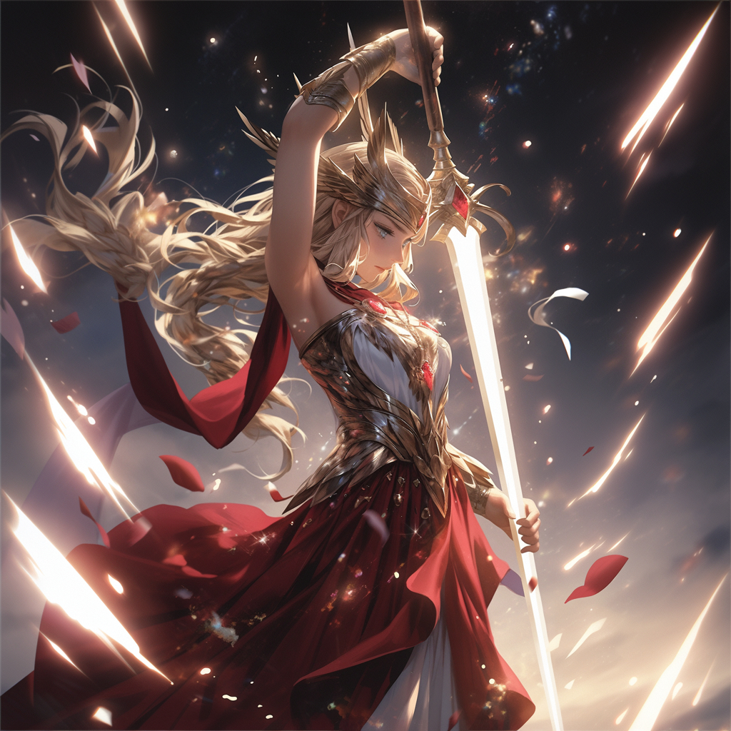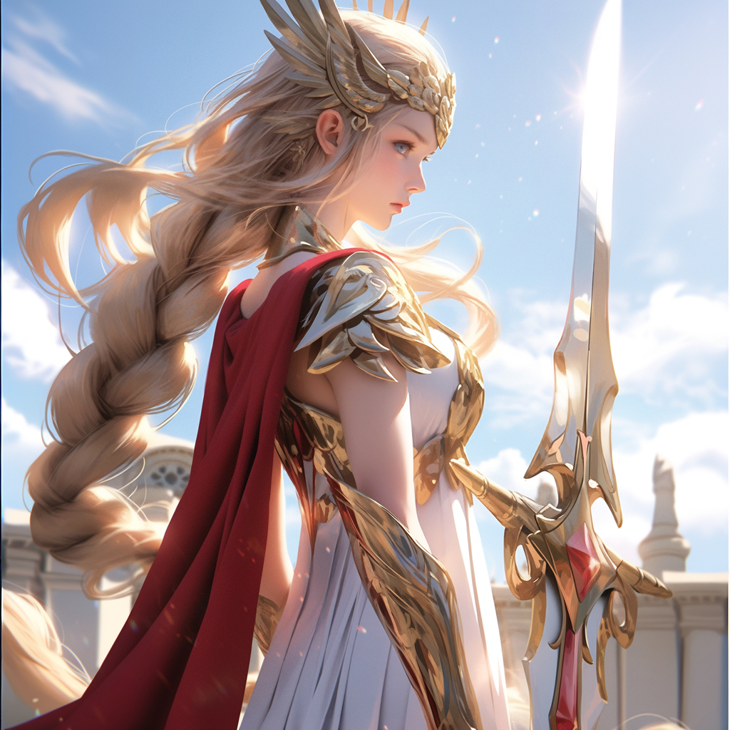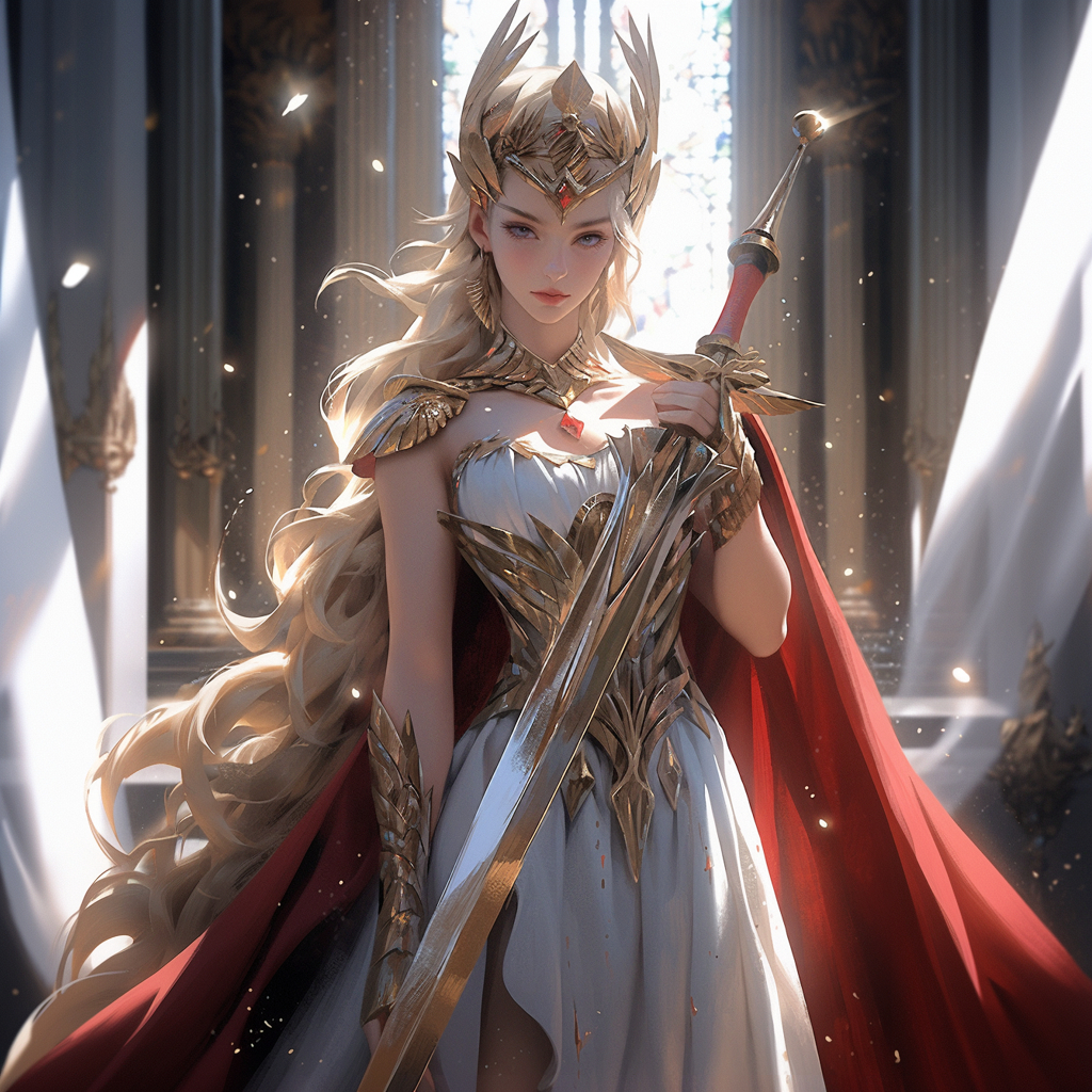 Holding a shiny metal long sword, the sword body is engraved with ancient runes and patterns. The sharpness of the long sword is beyond doubt, and every wave can cut and shatter the enemy's armor and body. In addition to the long sword, she also carried a heavy metal shield with her to resist enemy attacks and protect herself and her companions.