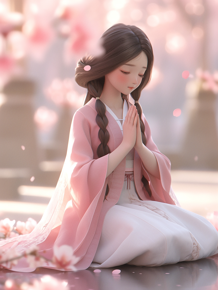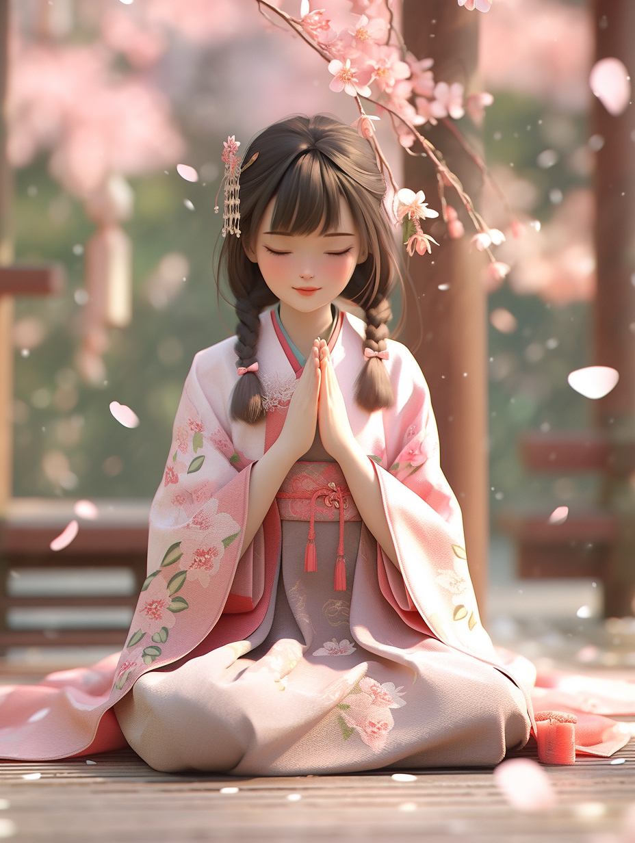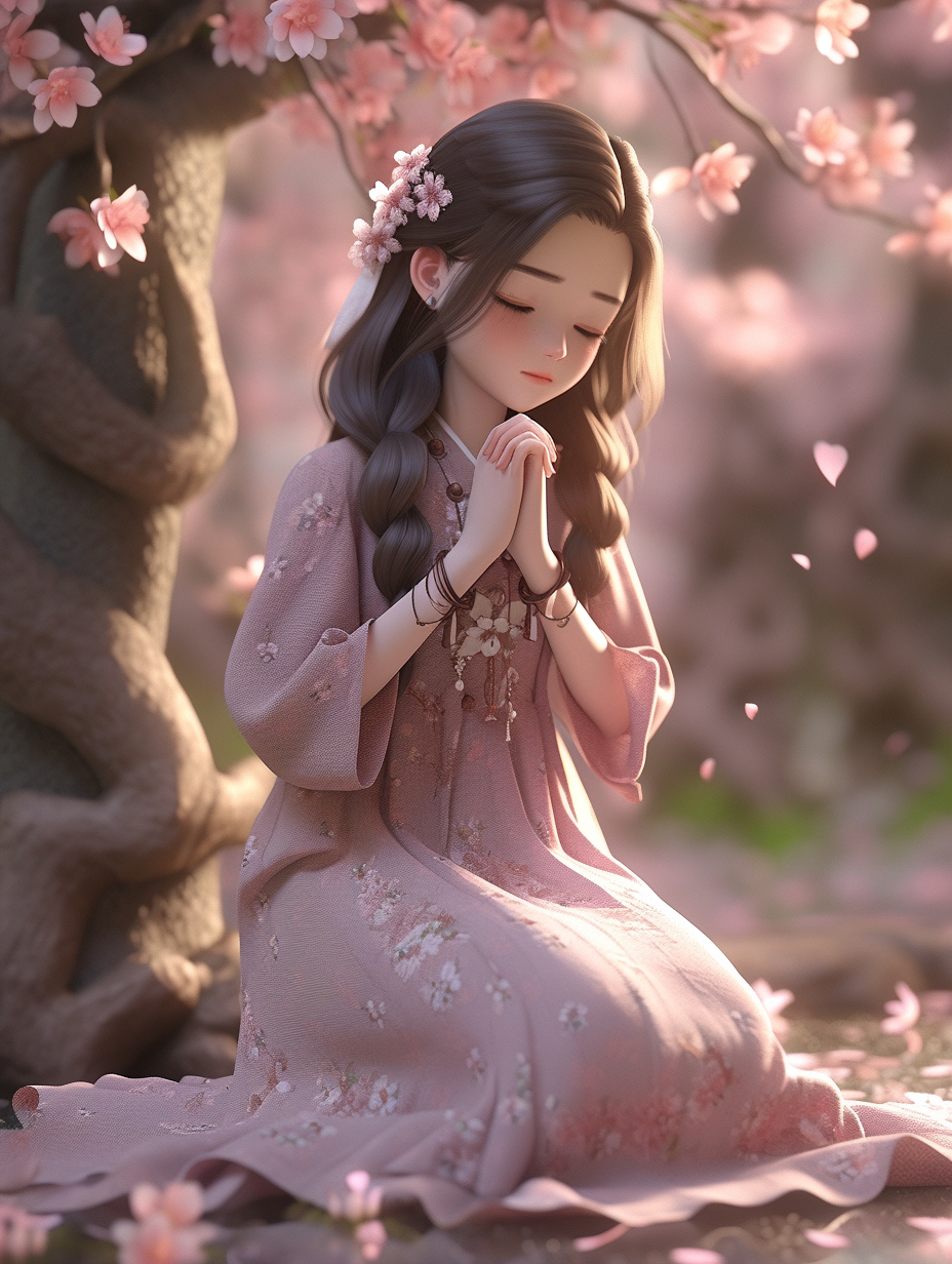 When little girls play under the cherry blossom tree, they are often filled with joy and laughter. They can chase, dance, and catch the fallen cherry blossom petals together, enjoying the beauty and carefree time brought by spring to their heart's content.