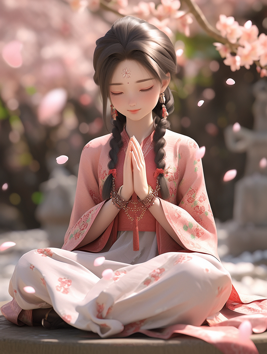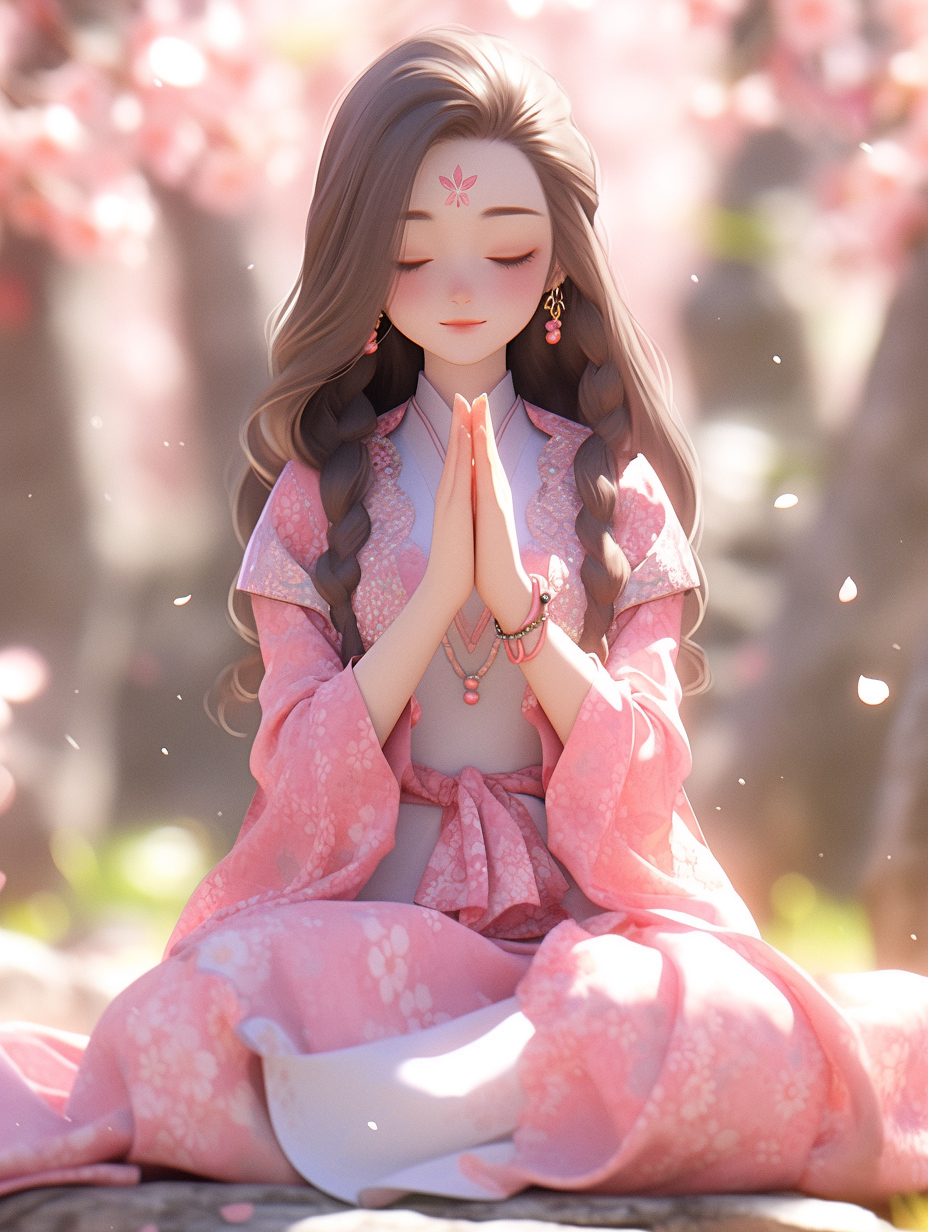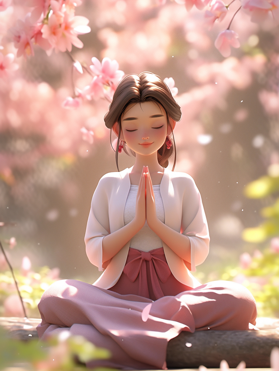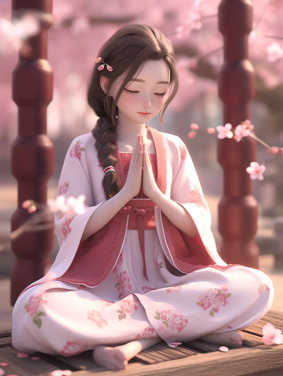 When little girls play under the cherry blossom tree, they are often filled with joy and laughter. They can chase, dance, and catch the fallen cherry blossom petals together, enjoying the beauty and carefree time brought by spring to their heart's content.